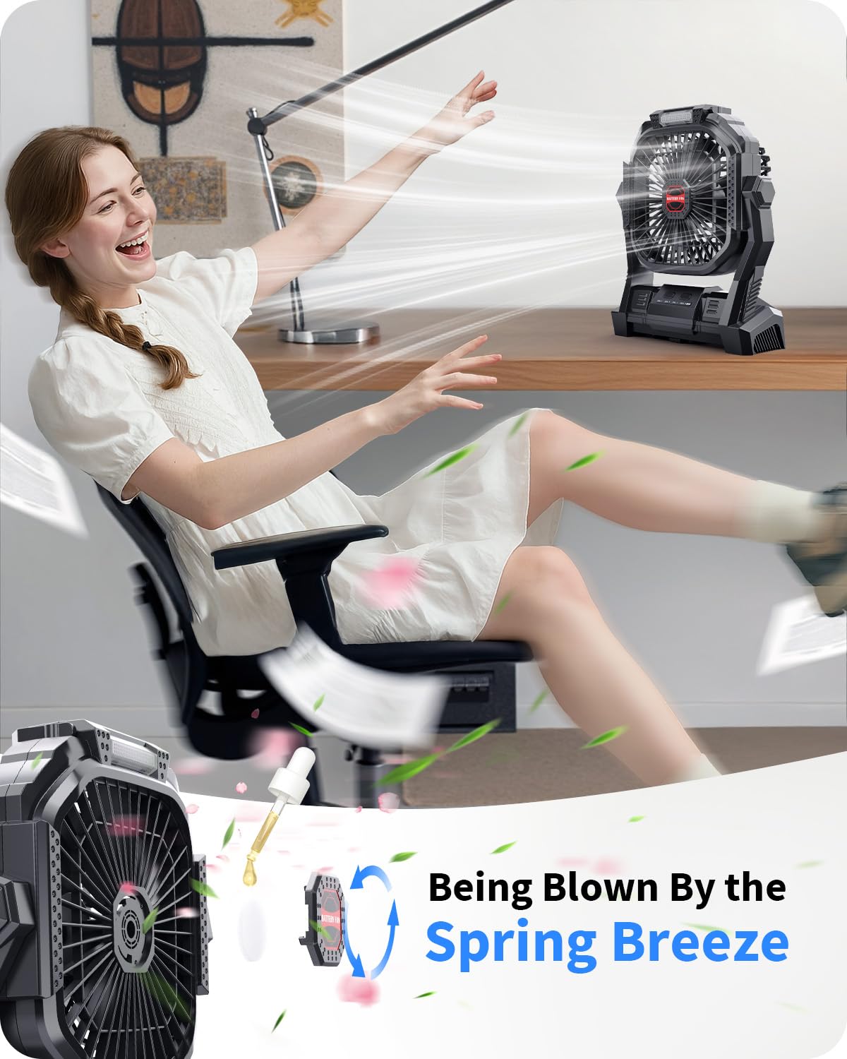 Gamfeiny Portable Battery Operated Fan, 20000Mah Rechargeable Camping Fan With Led Lantern, Hang Hook, Camping Gear For Travel,
