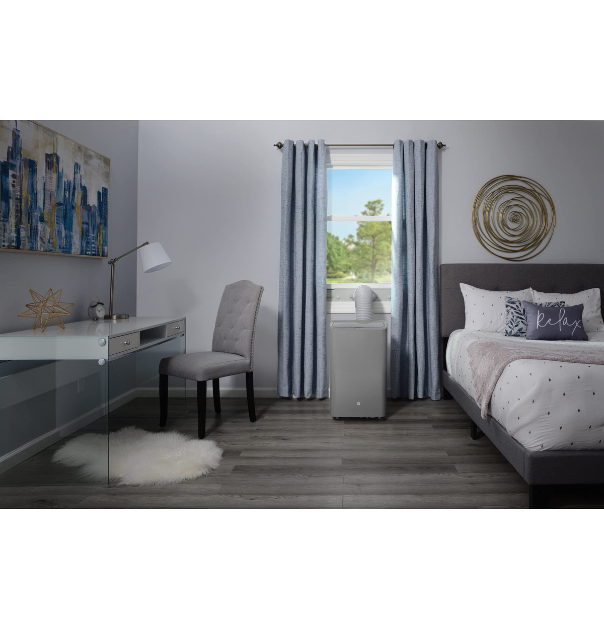 Ge 7,500 Btu Smart Portable Air Conditioner With Dehumidifier And Remote, Grey