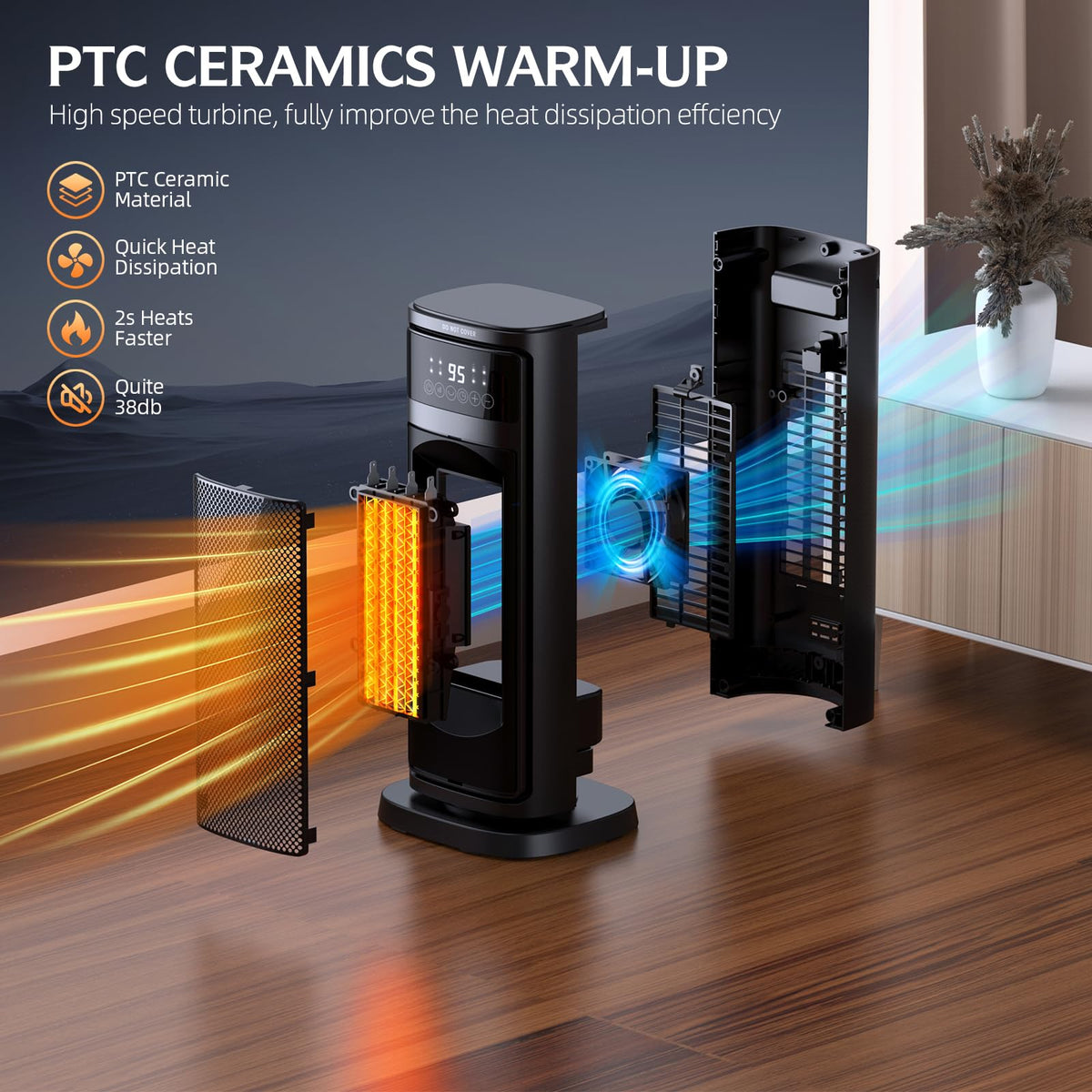 Giofxy Indoor Space Heater, 1 12H Timer, Digital Display, 70Oscillation, Ptc Ceramic Electric Heating 1500W, Suitable For Office