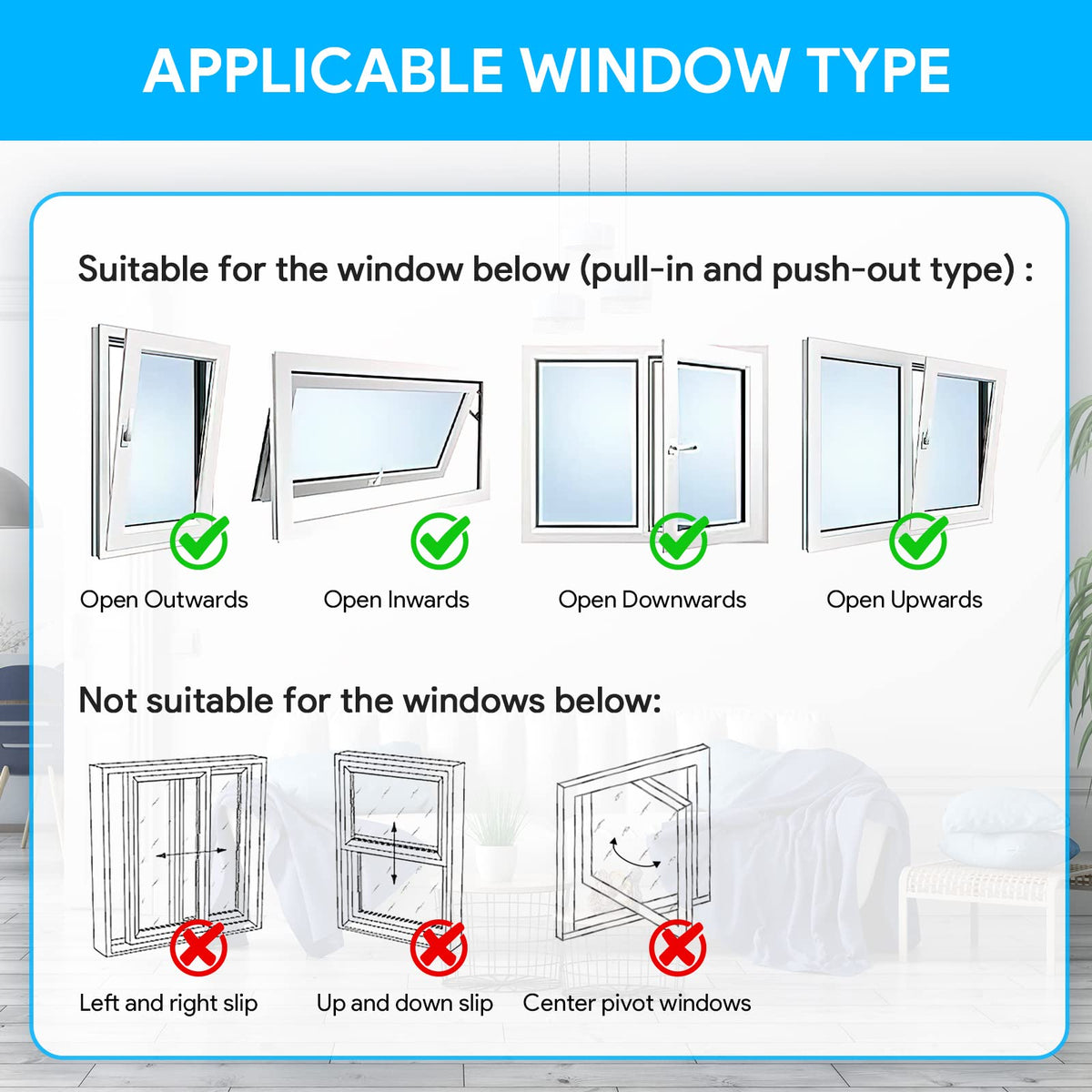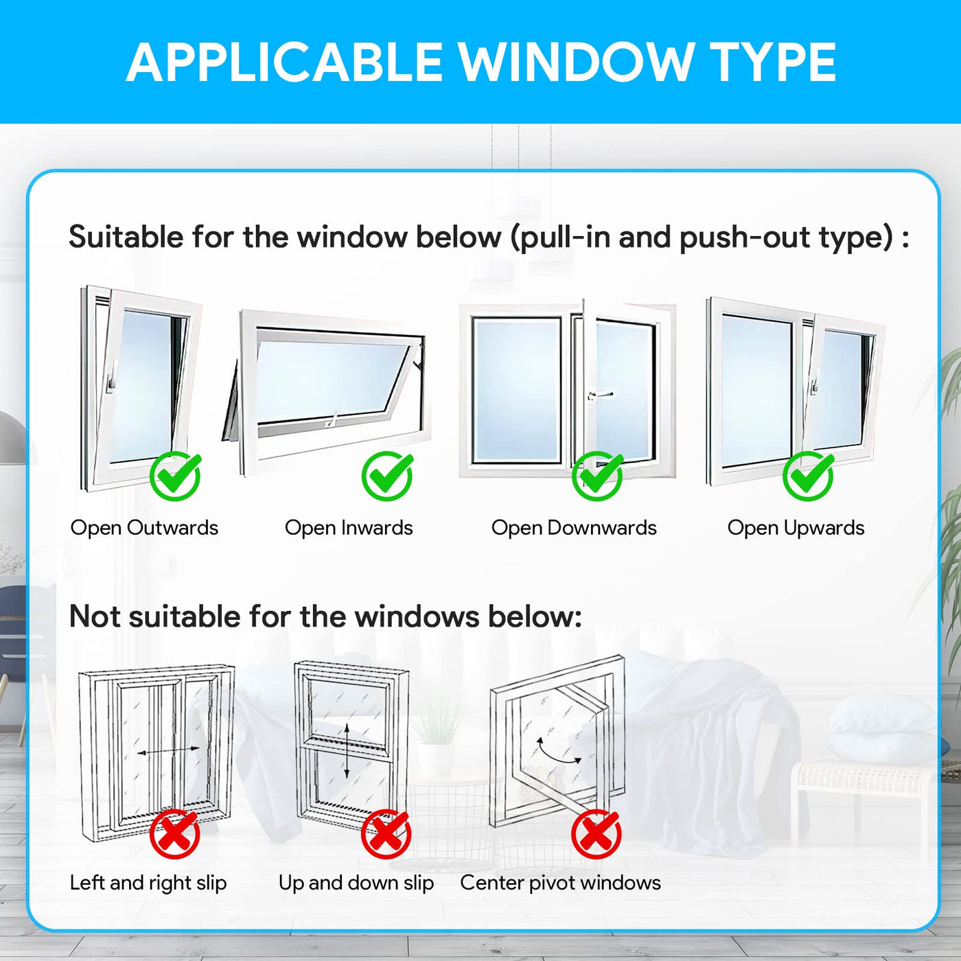 Q: Can I use the Gruntbear window seal on any type of window?A: The Gruntbear window seal is compatible with a variety of window types, including both push-out and pull-in casement windows, as well as skylights and awning windows. However, it is not suitable for sliding windows, vertical push-pull windows, or stereo revolving windows.