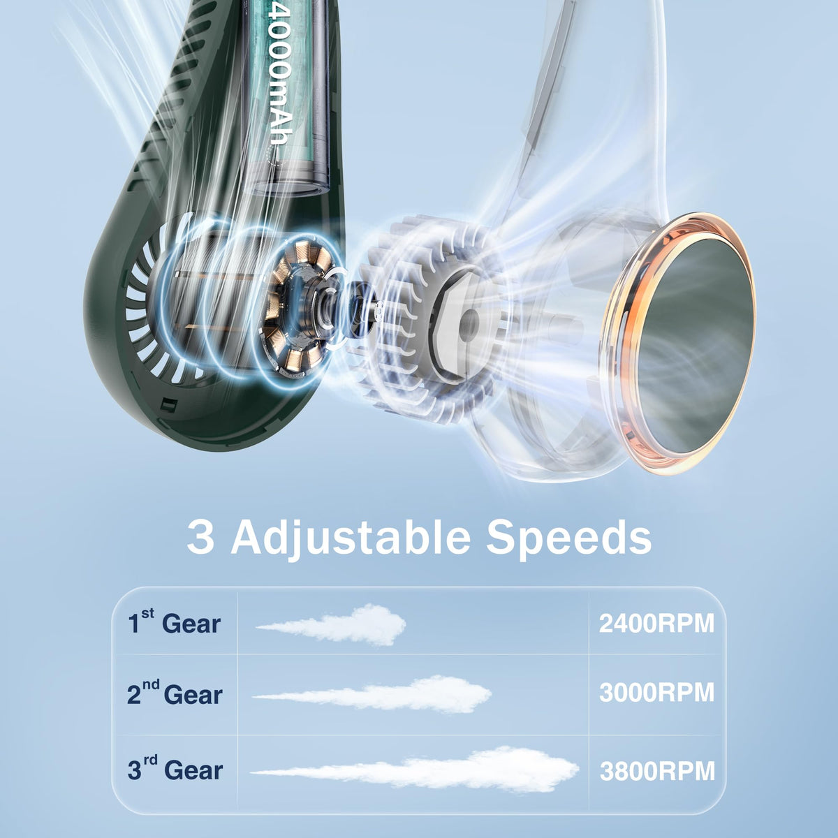 Q: What are the speed settings available on this neck fan?A: The GULAKI Neck Fan comes with three adjustable speed settings, allowing you to customize the airflow to your preference for optimal comfort in various environments.