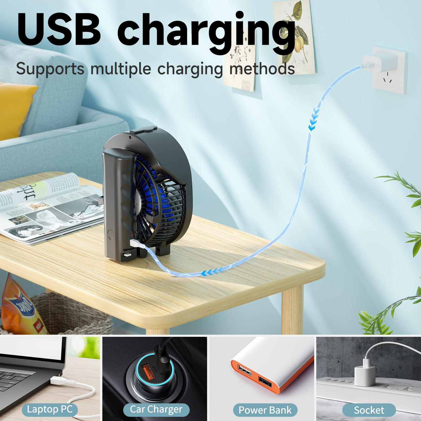 Specifications: Color: Black Blue Size: 25.1X11.5X4 Cm Weight: 250G Battery: 2000Mah 18650 Rechargeable Li-Ion Battery Input Current: 1A Input Voltage: 5V Output Power: 4W Charging Time: 4-4.5 Hours Working Time:2.5-10 Hours Speed Mode: 3 Speeds Mode(Low - Middle - High) Package List: 1 X Mini Fan 1 X Rechargeable Battery 1 X Usb Cable 1 X Metal Clip 1 X Water Bottle 1 X User Manual