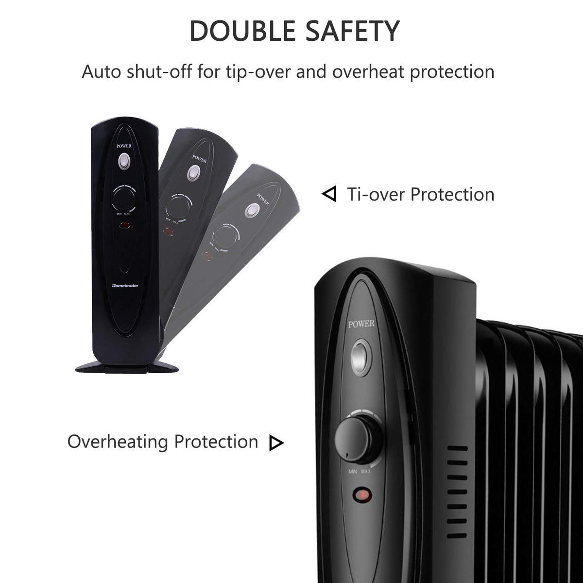 Q: Is the Homeleader Oil Filled Radiator Heater safe to use around children and pets?A: Yes, this heater features a circular design to prevent accidental bumps and includes an automatic thermal shutoff function that cuts off power if the unit becomes too warm, enhancing safety for children and pets.