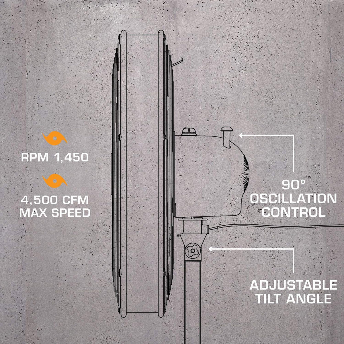 Stay Refreshed And Cool With The Hurricane Pro 20'' High Velocity Oscillating Metal Stand Fan, A Powerhouse Designed To Deliver Powerful Airflow And Versatile Performance Wherever You Need It. Engineered For Durability And Efficiency, This Fan Boasts A Robust All-Metal Construction With Heavy-Duty Aluminum Blades And A Sleek Black Powder-Coated Finish. Ideal For Homes, Greenhouses, Garages, And Workshops, It Combines Reliability With High-Speed Functionality. Experience Superior Air Circulation With Three Adjustable Speed Settings, Allowing You To Tailor The Airflow To Your Comfort Level. Whether You'Re Cooling A Large Gym Or A Cozy Living Room, Its 4500 Cfm Airflow Capacity And 1450 Rpm Ensure Rapid And Effective Ventilation. The Fan'S 90-Degree Oscillation Feature Ensures Widespread Distribution Of Cool Air, Optimizing Comfort Throughout The Room. Adjust The Fan'S Height Effortlessly From 39 Inches To 54 Inches, Adapting It To Different Spaces And Ensuring Optimal Airflow Where You Need It Most. Its Sturdy Weighted Base Keeps It Firmly In Place, Providing Stability Even At Higher Speeds. Perfect For Cooling During Hot Summer Days Or Improving Air Circulation In Indoor Gardens, The Hurricane Pro Stand Fan Is Your Go-To Solution For Reliable, Efficient, And Quiet Operation. Ideal For Any Setting Where Space-Saving, High-Speed Cooling Is Essential, This Fan Ensures You Stay Comfortable And Productive Year-Round. Enhance Your Living Or Working Environment With The Hurricane Pro 20'' High Velocity Oscillating Metal Stand Fan, Where Power Meets Performance For Ultimate Comfort And Air Quality.