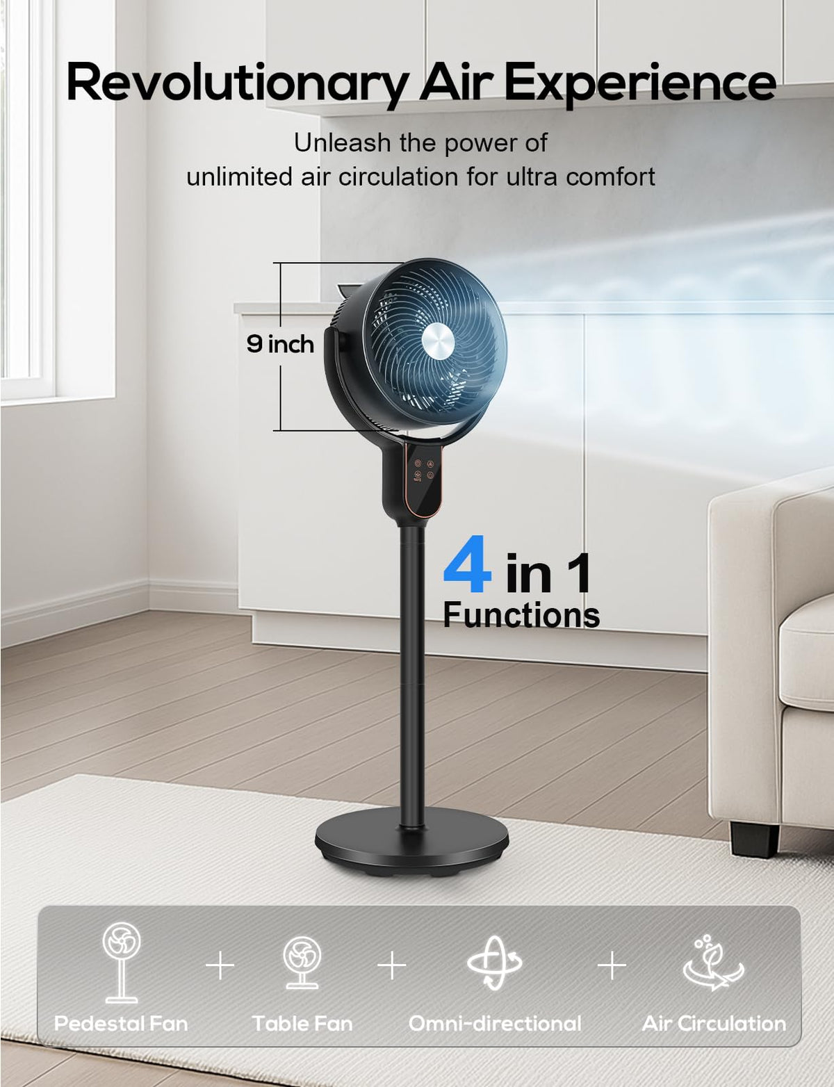 Hykolity Fan For Bedroom, 90+70 Omnidirectional Oscillating Standing Fan, 3 In 1 Pedestal & Tabletop Fan, Quiet Floor Fan With R