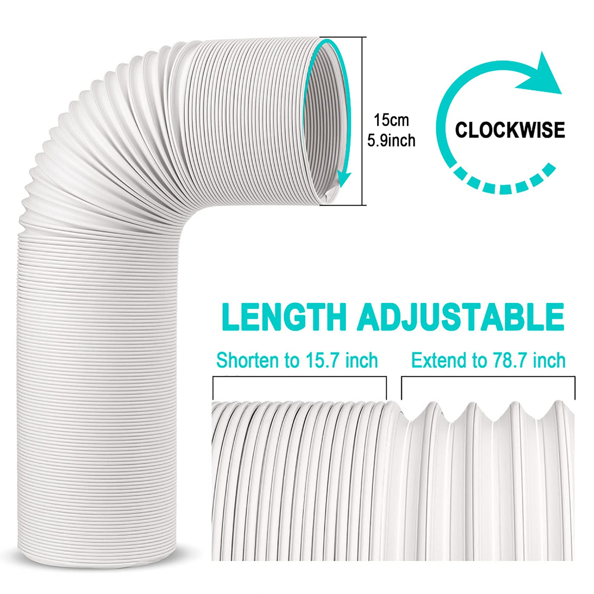 Wanna Get Rid Of The Heat? Wanna Enjoy The Cool Wind In Hot Summer Days? Or The Portable Air Conditioner Hose Purchased Before Is Not Durable? Don'T Worry, Our Hose Meets All Your Needs, And It Will Make You Happy And Cool. Try To Imagine, In Hot Summer Days, With Our Portable Air Conditioner Hose, Dont Need To Worry About The Heat, Just Be Happy With Your Family And Friends At Home, Just Work At Ease In The Office, Why Not? Its The Most Wonderful One For Beating The Heat. Vmade Of High-Quality Polypropylene&Stainless Steel, This Material Is Durable And Superior, For One, They Wont Be Harmful To Your Health, For Another, They Can Work At High Temperatures, Works-30?~140?. Vsave Your Time. Its Easy To Install, Just Check Your Hose Diameter And Thread Direction, Align The Portable Air Conditioner Exhaust Vent, Turn Clockwise Or Counterclockwise According To The Thread Direction You Purchased, Then Finally Put The Hose Out Of The Window. Vand You Will Enjoy The Cool Wind At Home And In The Office, Just Say Goodbye To The Hot Weather. Reminder: Our Hoses Are Available In Both Clockwise And Counterclockwise With Different Diameters. Before Purchasing, Please Make Sure The Size And Thread Are Compatible With Your Portable Ac Units. Package Includes: 1*Portable Air Conditioner Hose Specifications: Color: White Material: Polypropylene&Stainless Steel Diameter: 5.1 Inches/ 13 Cm, 5.9Inches/15Cm Maximum Length: 78.7 Inches / 2M Minimum Length: 15.7 Inches / 40Cm Thread Direction: Clockwise, Counterclockwise
