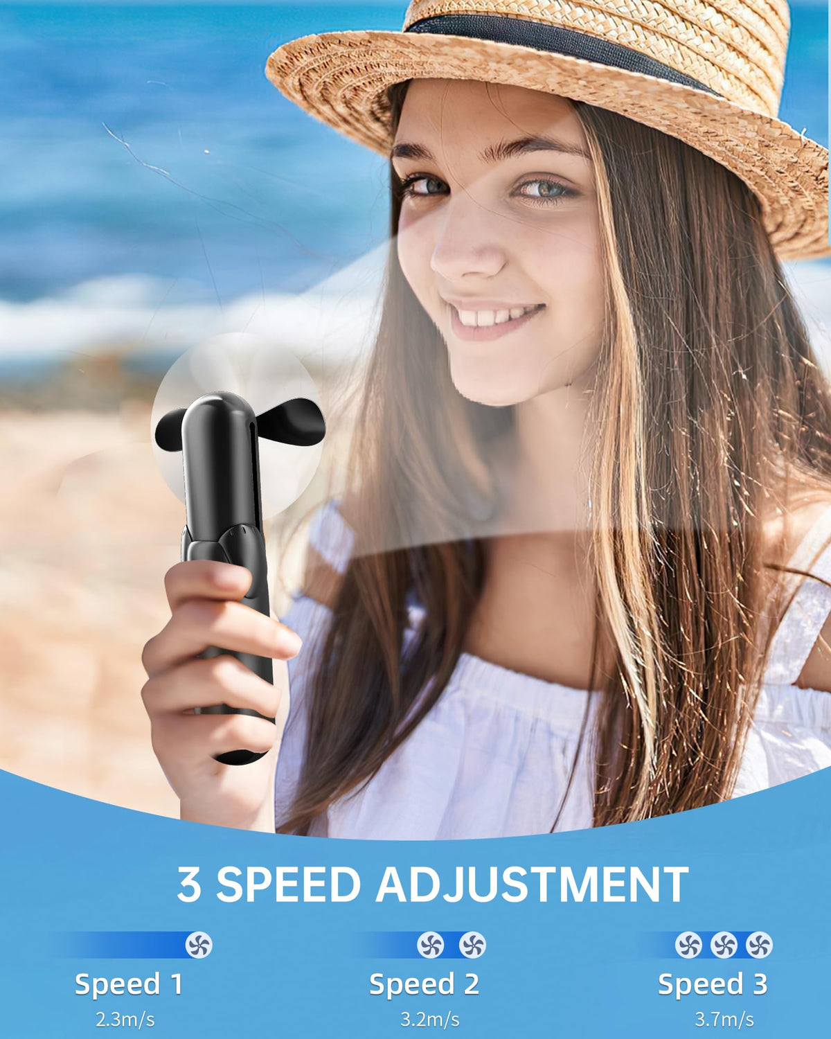 Jkjoy Mini Handheld Fan, Portable Hand Fan With Usb Rechargeable, 2000 Mah Battery Operated Pocket Fan, 3 Speeds Adjustable, 2 I