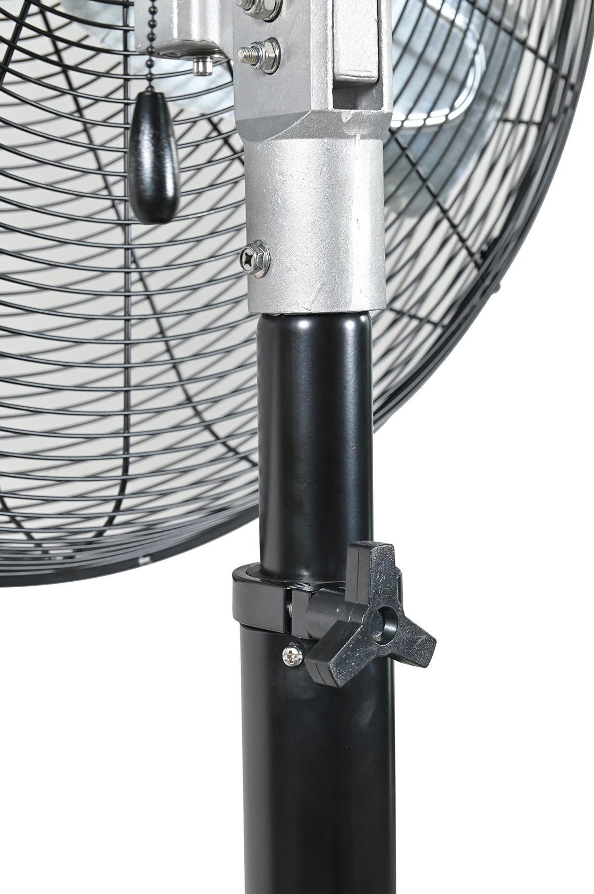 K Tool International 77723; Outdoor Waterproof Ipx4 Rated Industrial Pedestal Fan, Non-Oscillating 24'' Fan With Adjustable Height Stand And Aluminum Fan Blades, 3-Speed Control, 7,435 Max Cfm, Black