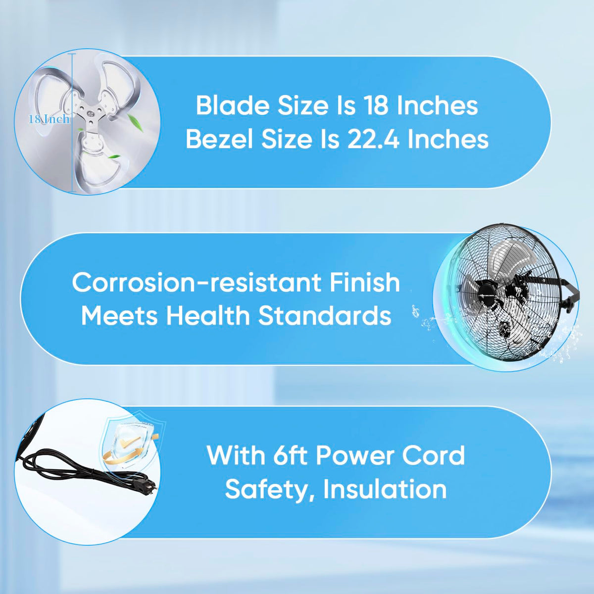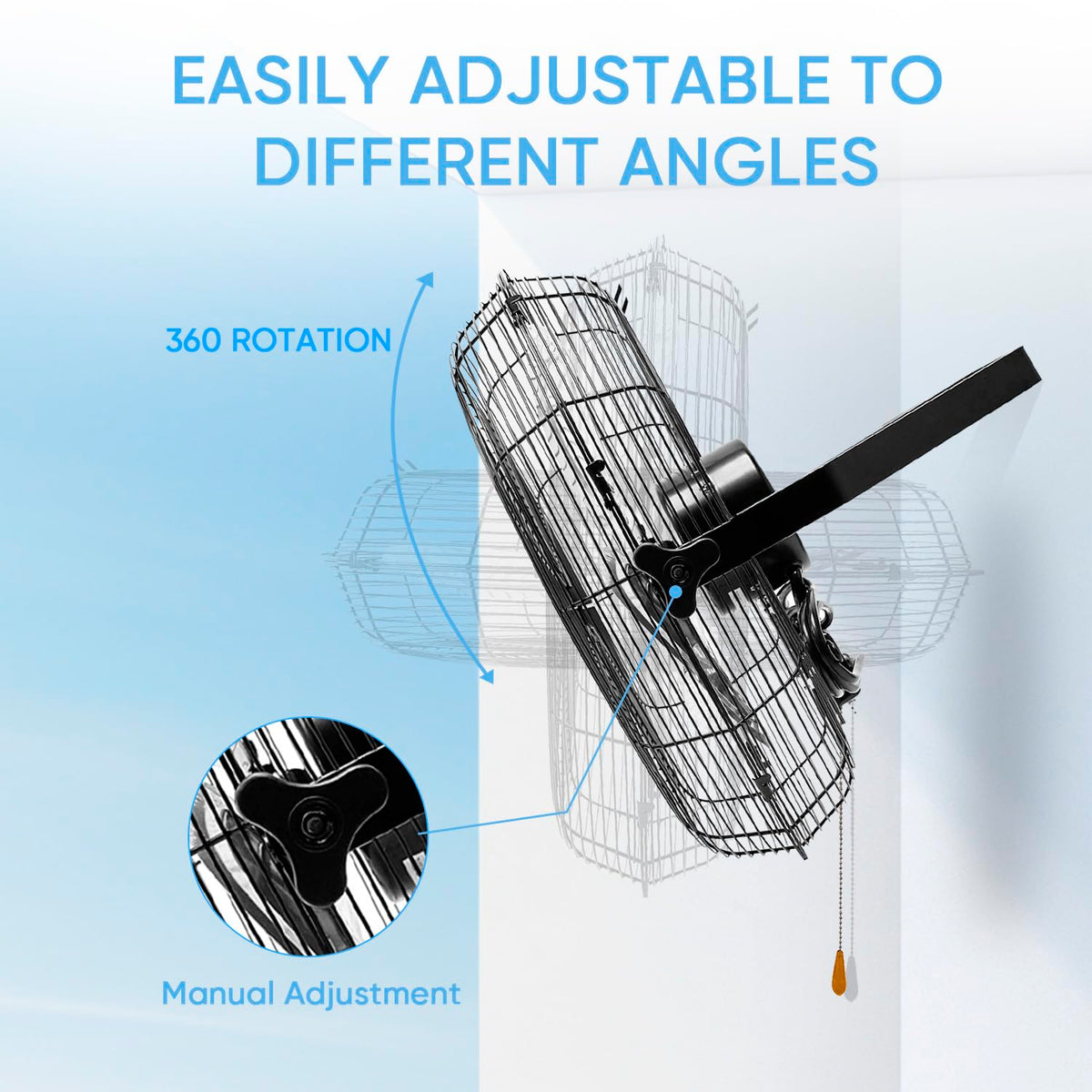 Superior Performance3-Speed Adjustable With Pull Chain Control Featuring Three Different Speeds,Full Sealed Motor Produce Up To 4012 Cfm Of Airflow, 73Ms Air Speed Powerful And Strong Ventilatorthe Pull Chain Is 60 Centimeters Which Is Very Convenient For You To Control The Industrial Fan Wide Area Cooling360Aadjustable Tilting Wall-Mounted Circulating Fan Lets You Easily Direct Airflow By Changing The Angle Of The Fan Head For Targeted Cooling Performance Easy Assembly And Useeasily Mounted With The Included Heavy Duty Wall Bracket And Hardware Ideal For Home, Patio,Greenhouses, Garages, Workshops And Other Areas That May Need A Heavy Duty Wall Fan Safety Performanceetal Wall Mount Fan Includes Etl Certification, Thermal Overload Protection, Osha Compliant Rust-Resistant Grille, 3 Prong Grounded Plug With Fuse, Newest Technology Of Copper Wire Dual Ball Bearing Motor For Long Life And Optimum Performance Satisfying Customer Servicecustomer Service Is Our Pleasure And We Will Take Care Of Any Issues With Our Products Feel Free To Email Us Any Time For Any Concerns All Kenbrown Fan Products Has 5 Years Motor - Etl Listed