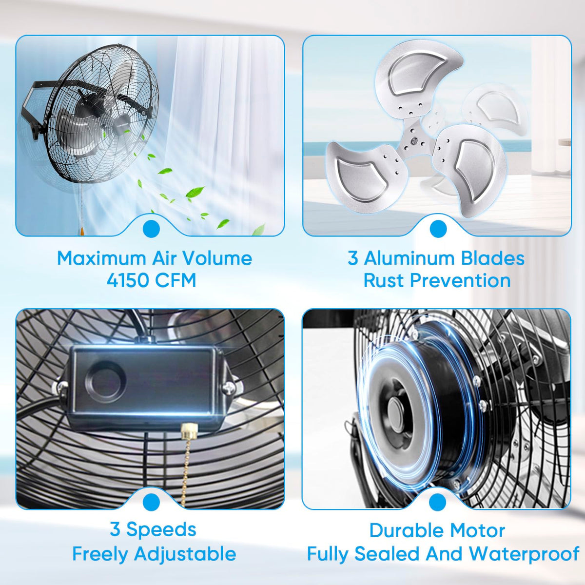 18 Inch Fan Wall Outdoor Fans Mount Mounted Mountable Oscillating Ceiling Waterproof Gazebo Garage Patios Patio Greenhouse Metal Misting Outside Hanging Industrial Barn Ventilador De Pared