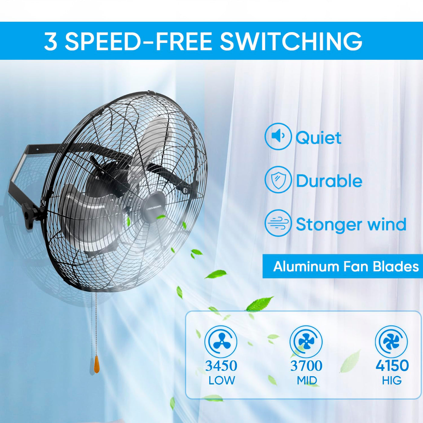 Ken Brown 18 Inch Industrial Wall Mount Fan, 4300 Cfm Metal Heavy Duty Fan, 3-Speeds High Velocity Oscillating Fans For Patios,