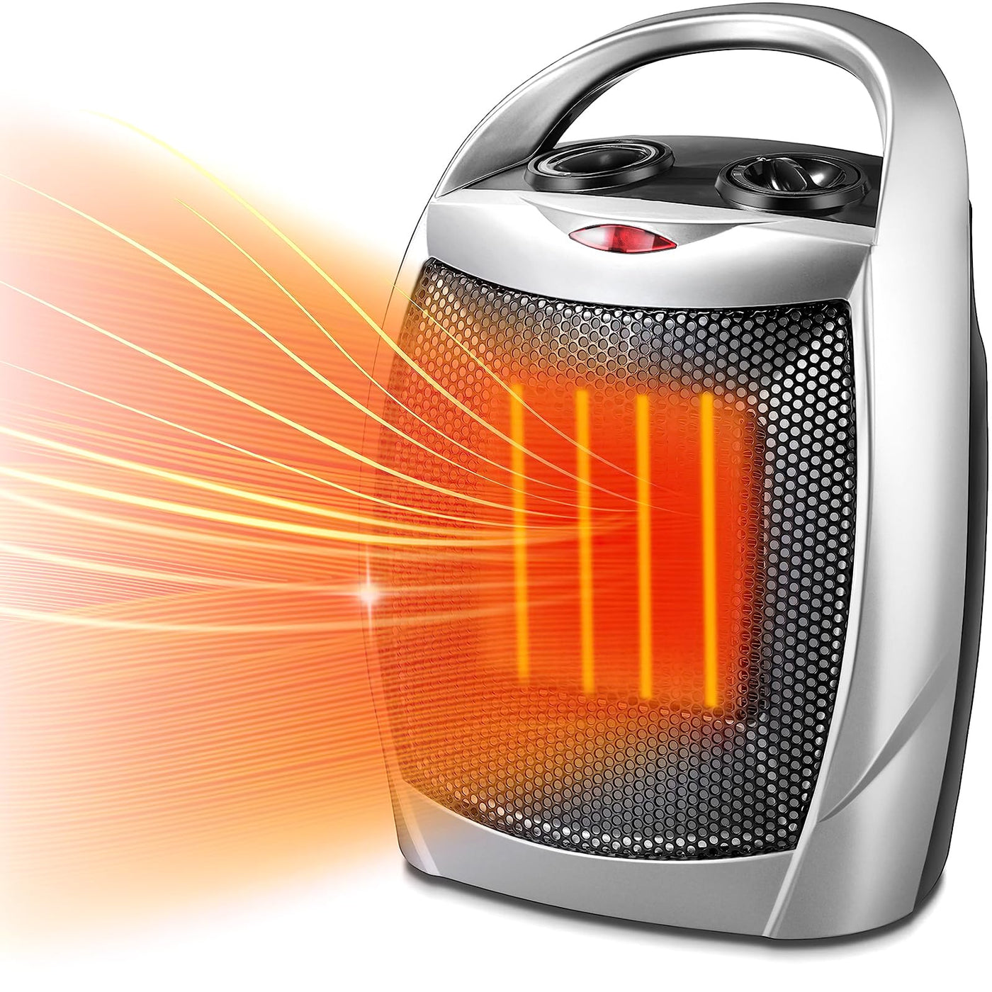 Kismile Small Electric Space Heater Ceramic Space Heater,Portable Heater Fan For Office With Adjustable Thermostat And Overheat