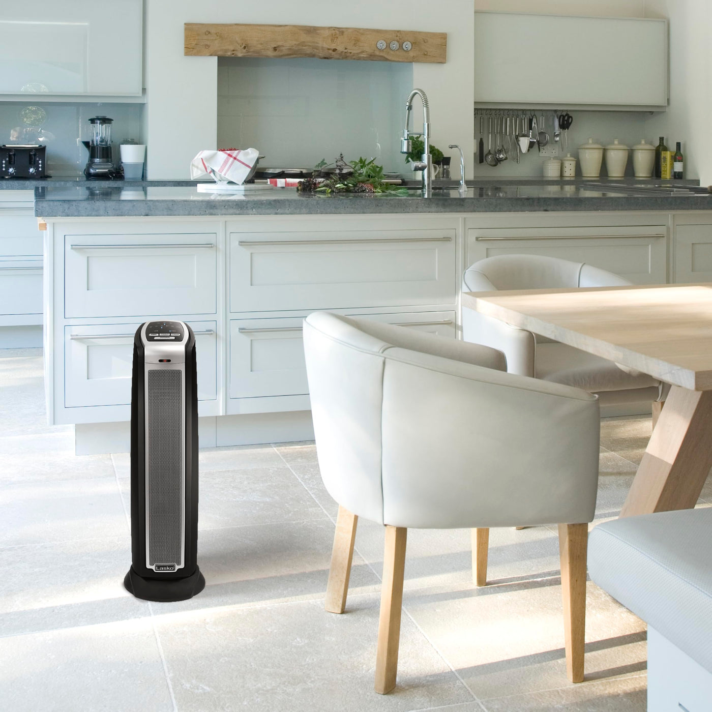 The Lasko 5790 Oscillating Ceramic Tower Heater, With Remote Control, Offers Safe Warmth On Chilly Days. Designed For Home Or Office Use, This Ceramic Tower Heater Takes Up Very Little Space Yet Can Warm An Entire Room. The Patented Blower Technology And Widespread Oscillation Propels Warmth Evenly Throughout The Room. With Its Electronic Thermostat, Two Comfort Settings And Energy-Saving Timer, Keeping The Desired Temperature On Your Schedule Is Simple With This Heater.