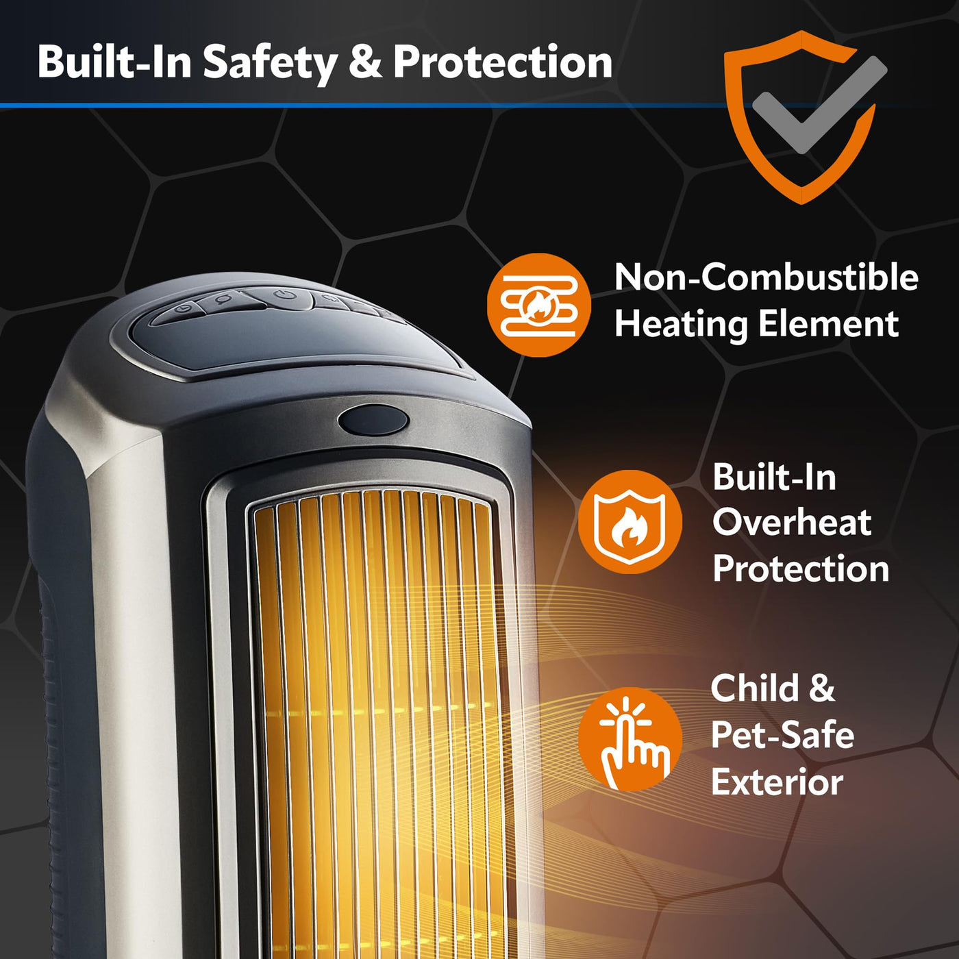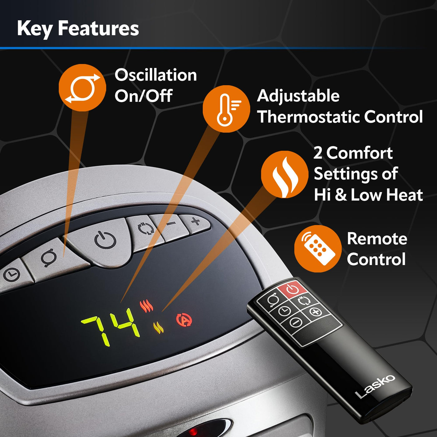 Get Cozy In Your Home Office, Finished Basement, Bedroom Or Almost Any Other Room In Your Home With Lasko'S Remote Control Ceramic Tower Heater With Digital Display. Warm The Room You Are In And Lower Your Whole-House Thermostat To Keep Comfortable During The Winter Months Without Burning A Hole In Your Pocket. Its Elongated Ceramic Heating Element, Powerful Air Penetration And Widespread Oscillation Deliver Optimal Warmth Throughout Your Entire Room. Its Convenient Carry Handle Makes It Easy To Transport To Most Locations In Your Home. With Digital Controls, Programmable Thermostat And An 8-Hour Timer, This Heater Ensures Staying Warm Has Never Been So Easy. Fits Neatly Into Smaller Spaces.