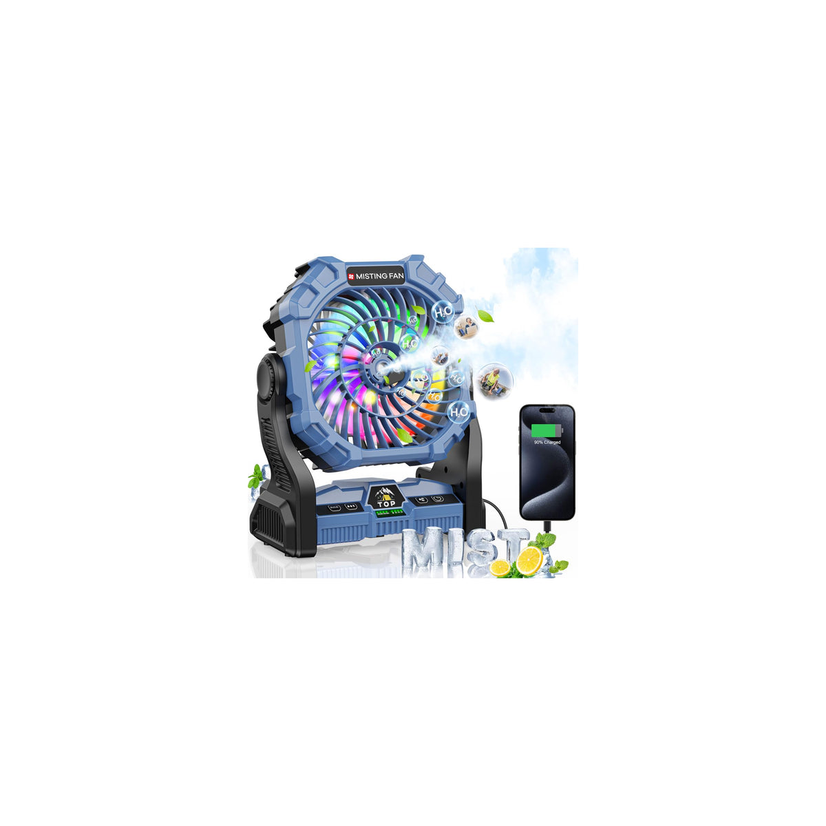 Misting Fan Portable With Rgb Lantern, 30000 Mah Rechargeable Battery Operated Camping Mist Fan With Emergency Hurricane Supplie