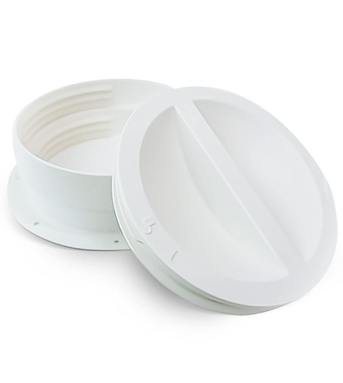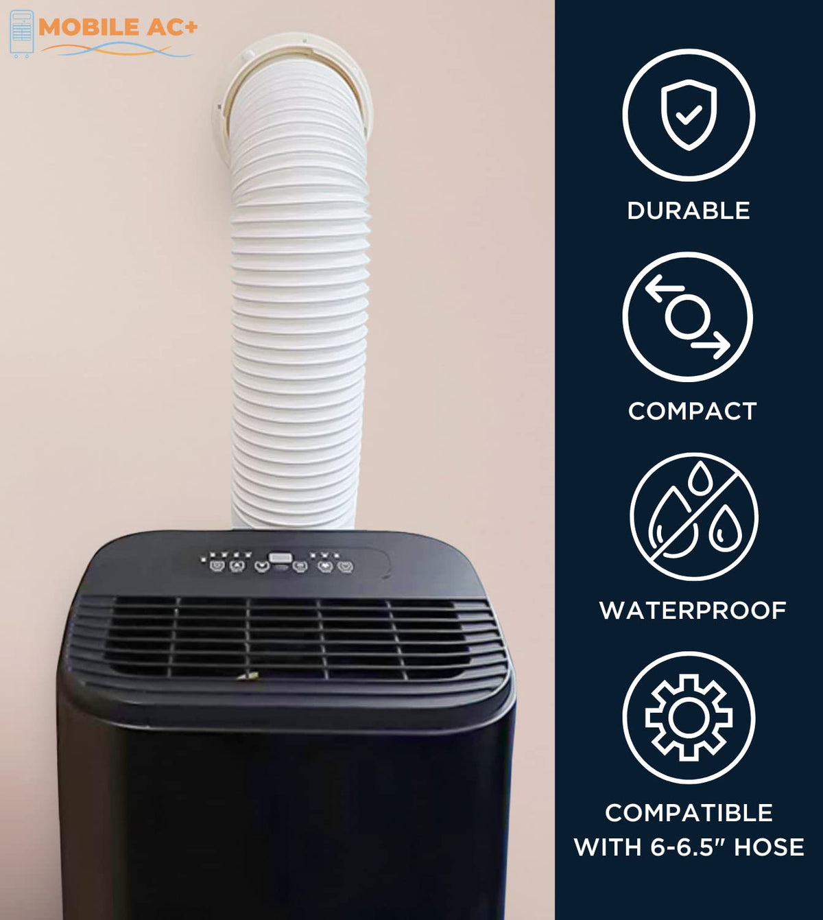Mobile Ac+ Dual Size Wall Mount Connector For Portable Ac Vent, 6 And 6.5 Inches Hose Compatible, White, Cover Plug Included, Om