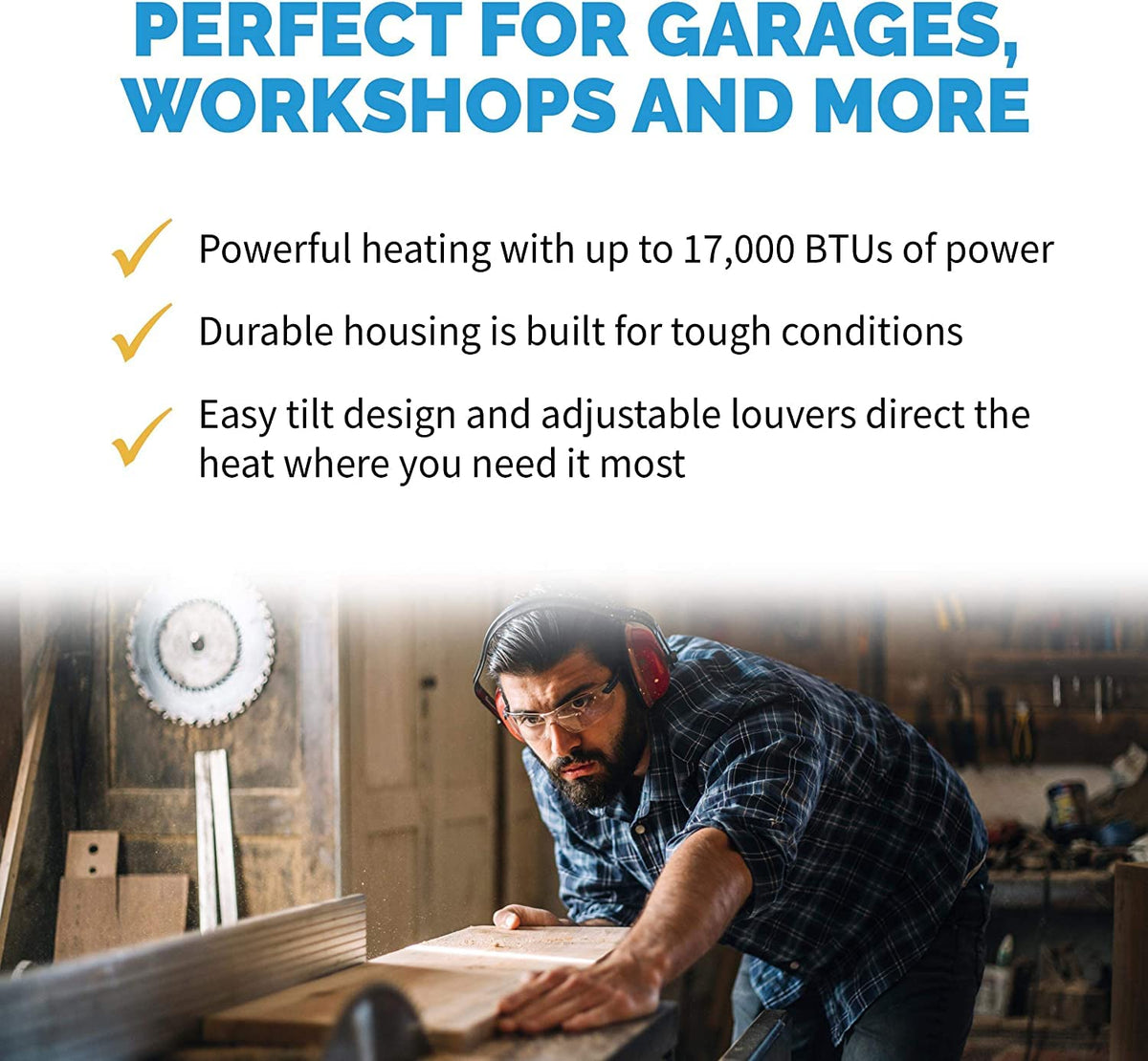 Enjoy A Warmer More Comfortable Space As You Work In Your Workshop Or Garage With The Newair G73 Electric Garage Heater! Featuring 17,060 Btus Of Heating Capacity, This Garage Heater Can Warm Up To 500 Sq. Ft. Because The Newair G73 Runs On Electricity Instead Of Propane, It'S Safer And More Convenient Than Gas Heaters. Mount It On The Wall Or Ceiling And Direct The Heat Where You Need It With The Included Swivel Bracket. Built Of Sturdy Steel With A Powder-Coated Finish, This Powerful, Rugged Heater Is Exactly What You Need To Keep Your Workshop Warm This Winter. Air Flow Capacity 200 Cfm