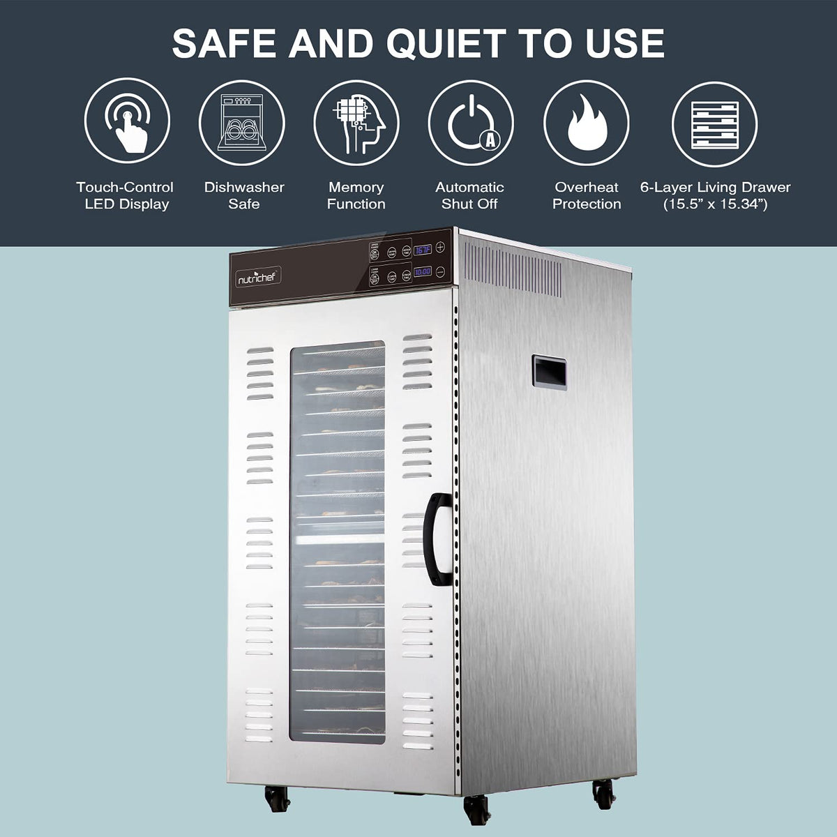 Nutrichef Commercial Electric Food Dehydrator Machine | 20 Shelf Extra Large Capacity - Stainless Steel Trays | 2000-Watts, Digi