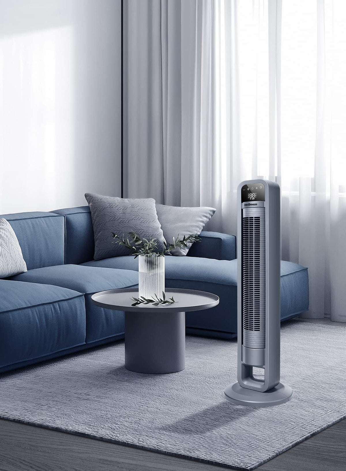 Omnibreeze Digital Electric Tower Fan, Inner Oscillation With Remote Control, Led Display, Standing Bladeless Floor Fans Cooling