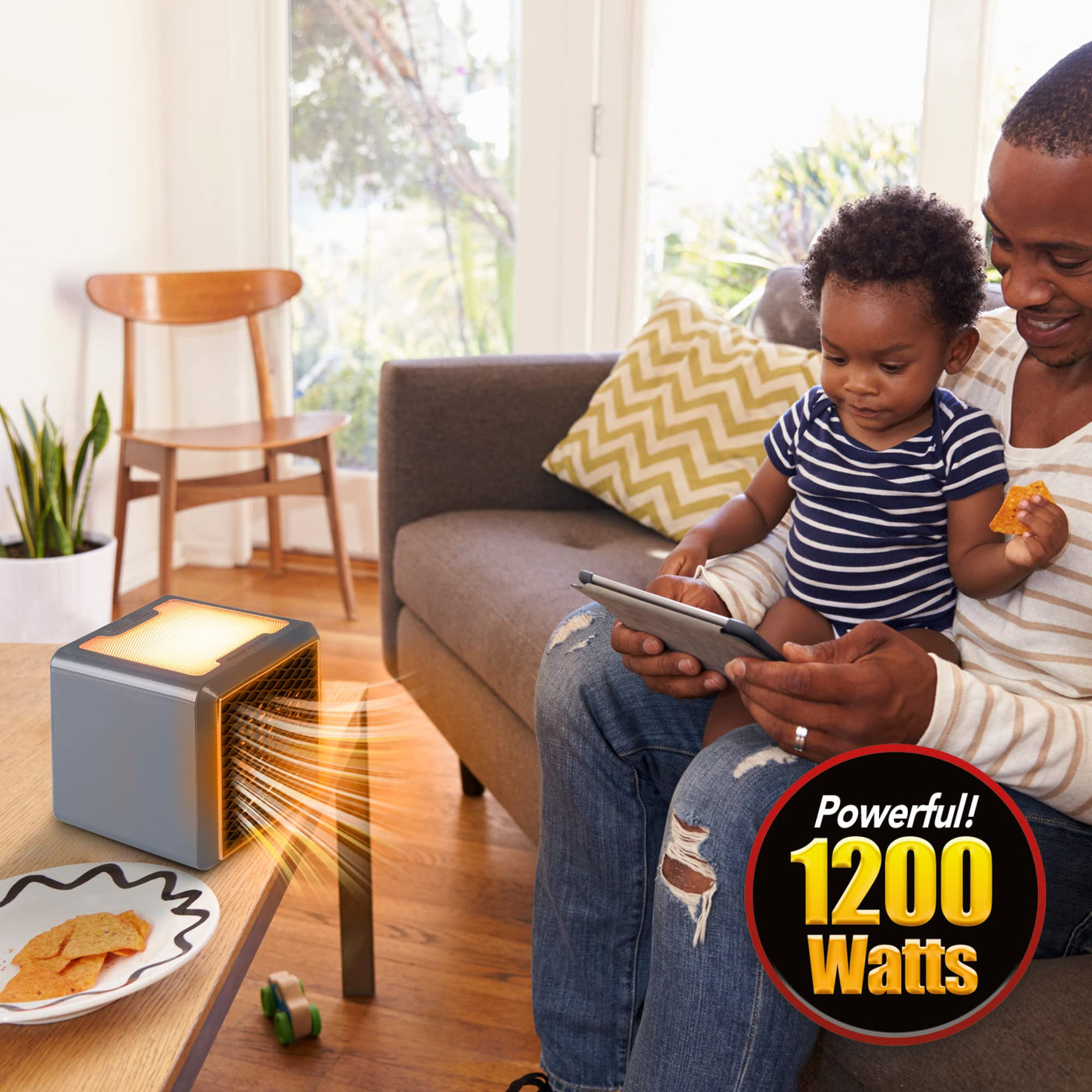 Enjoy Warm, Toasty Air, Anywhere With The Ontel Handy Heater Pure Warmth Personal Space Heater. This Personal Ceramic Space Heater Warms Up The Surrounding Air By 20 Degrees F While Preserving The Moisture In The Air With Its Ceramic Heating Technology, Preventing Dry, Itchy, Irritated Skin. This Small Space Heater Features A Removable True Shield Filter That Filters Out Harmful Pollutants In The Air. This Electric Heater Has 3 Adjustable Heat Settings - High, Medium, And Low, That Allow You To Easily Find Your Comfort Zone. The Portable Heater For Indoor Use Is Also Whisper-Quiet, For A Peaceful Undisturbed Night Of Sleep Or A Hectic Day At Work. This Space Heater Fits Right In Small Or Large Rooms, Like The Bedroom, Playroom, Living Room, Or Garage. Its Efficient Operation, While Still Generating 1200W Of Heat That Helps You Beat The Winter Chills Like A Pro!