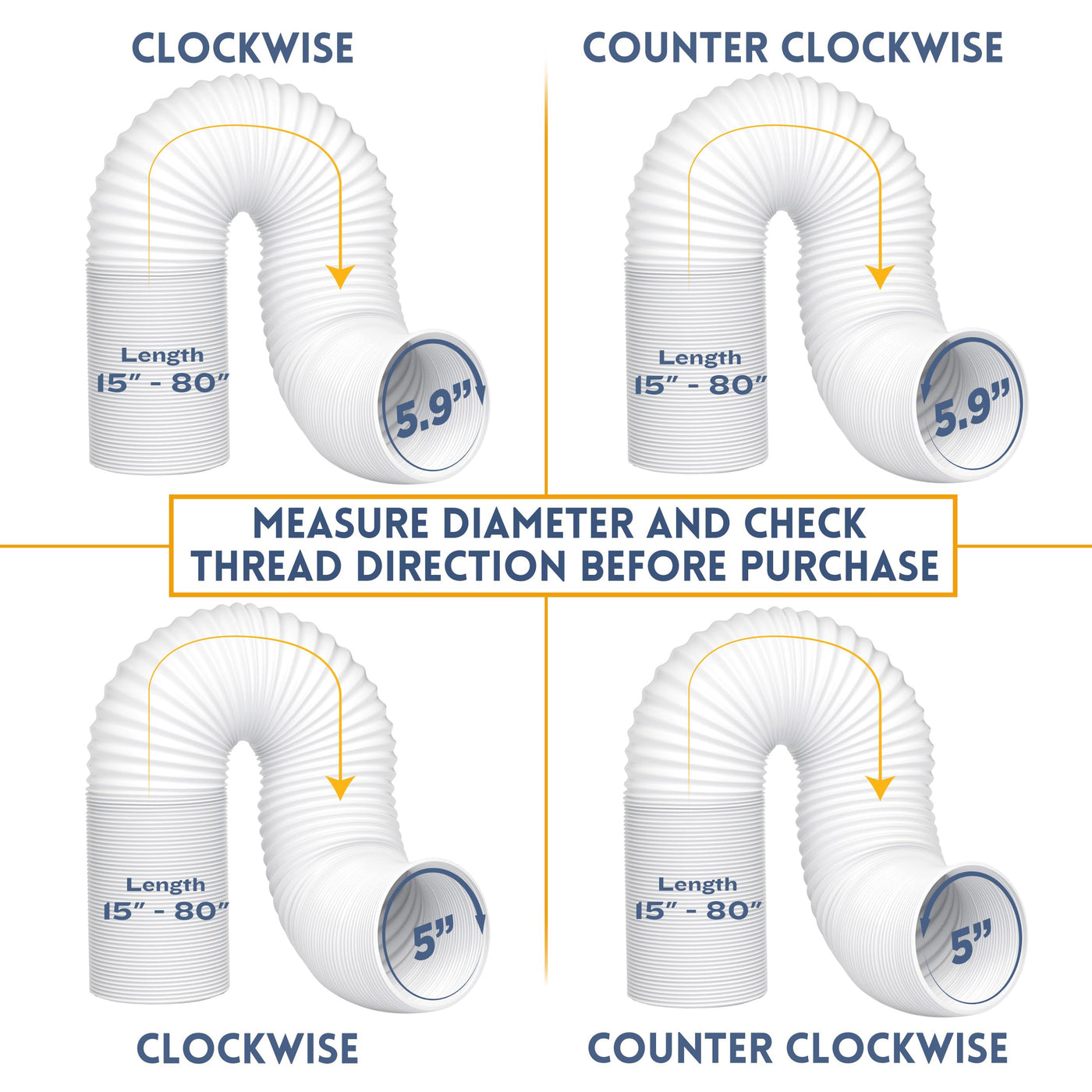 Kraftex Ac Hoseour Hose Is Shrinkable To 15'' And Extendable To 80'' With A Diameter Of 5.9'' And Twists Clockwise On To Your Acour Air Conditioner Vent Stops Leaks And Saves Energy. It'S Extra Long Length Means That You'Ll Never Have To Waste Time And Money On Putting Two Hoses Together!We Are So Confident In Our Ac Hose That If You'Re Feeling Hot And Bothered, We Will Fully Refund You. So, Click ''Add To Cart'' Now And Buy With Confidence.