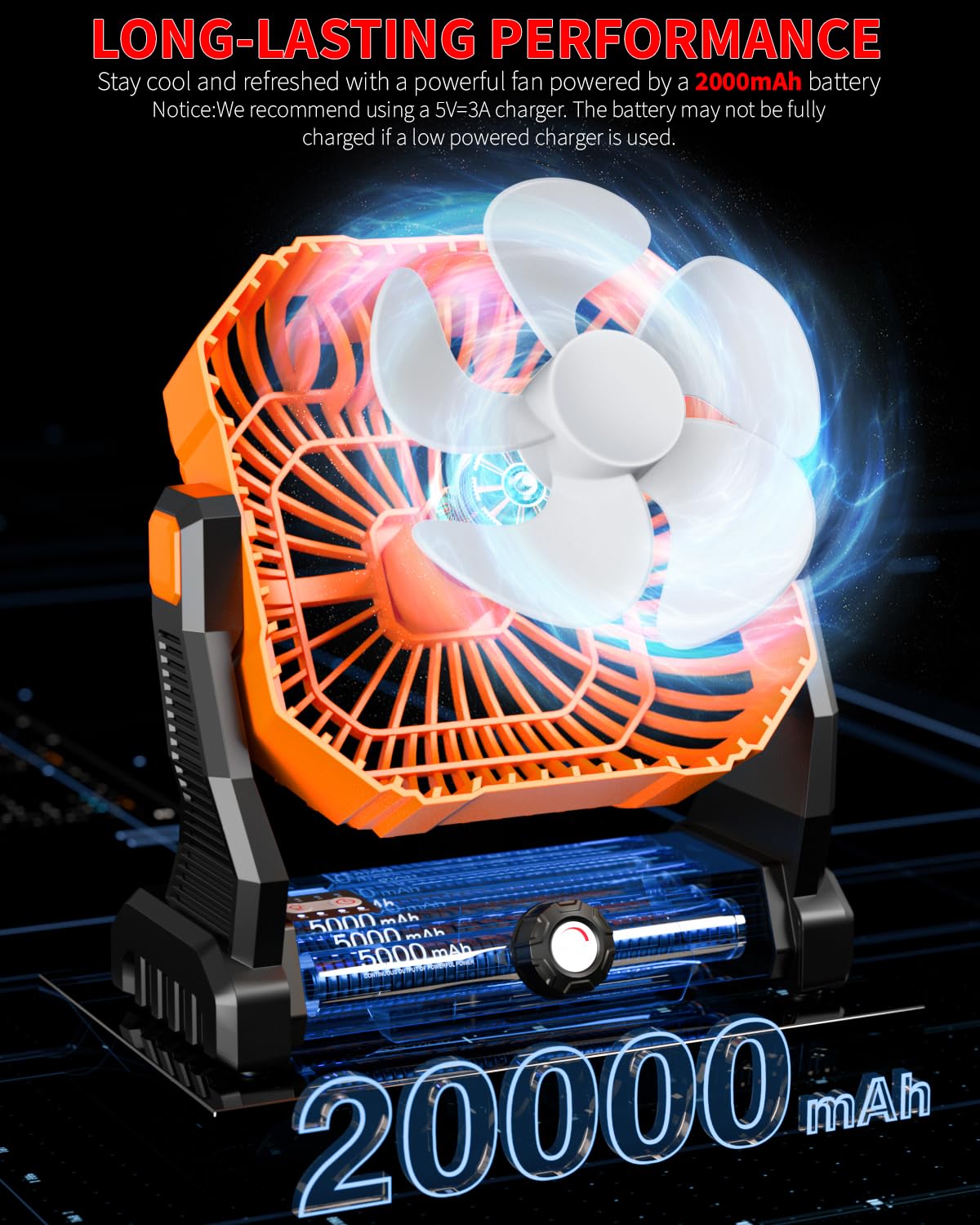 Portable Camping Fan Rechargeable, 20000Mah Battery Powered Fan With Led Lantern, 270Head Rotation, Small Table Fan, Usb Battery