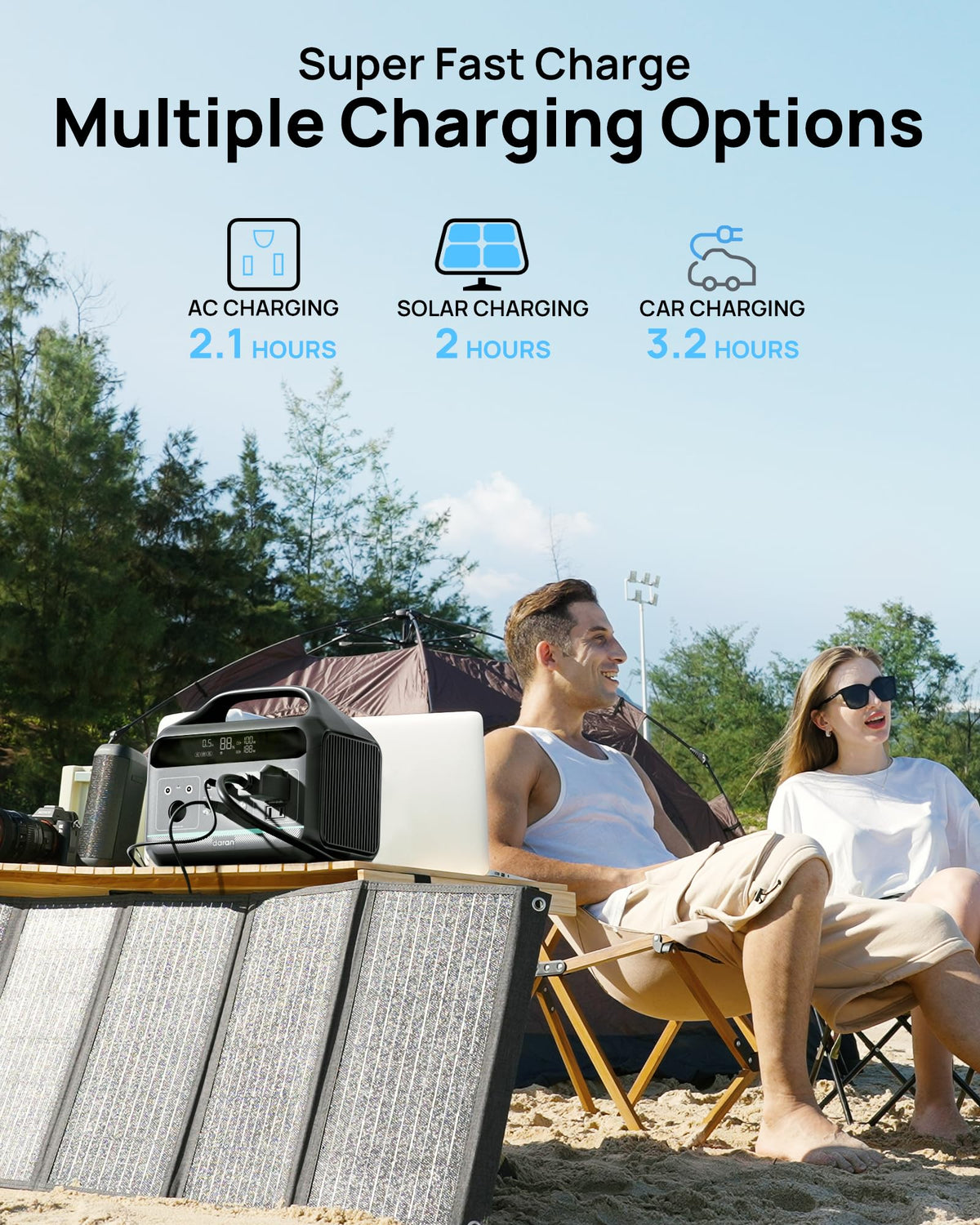 Portable Power Station, 192Wh Lifepo4 Battery Backup W/ 2 300W (Surge 600W) Ac Outlets, Pd60W Fast Charging Outlet, Solar Genera