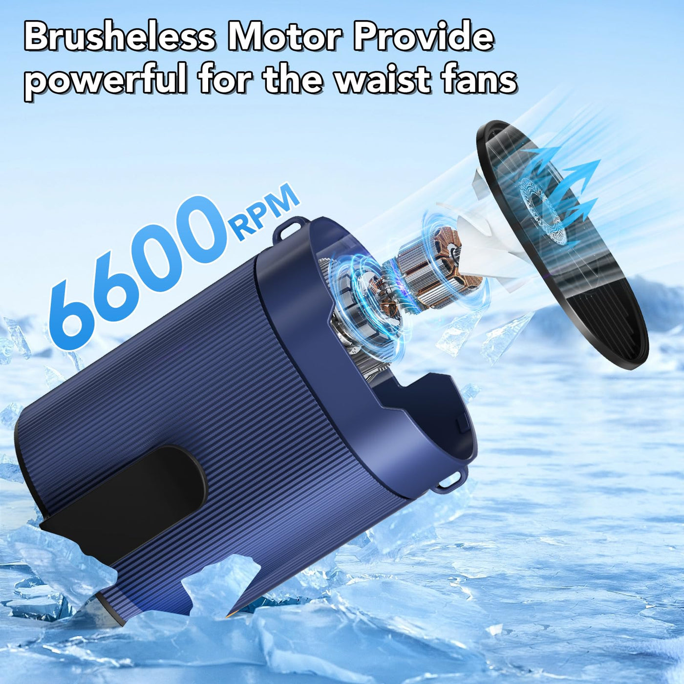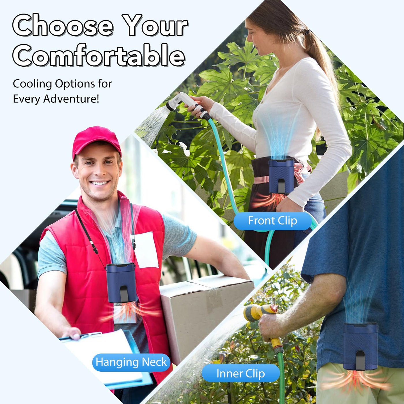 Portable Waist Fan, Rechargeable 3000Mah Battery, 25H Runtime, 6600Rpm Turbo Dual Clip, 4 Speeds Adjustable, Belt Fans For Hikin