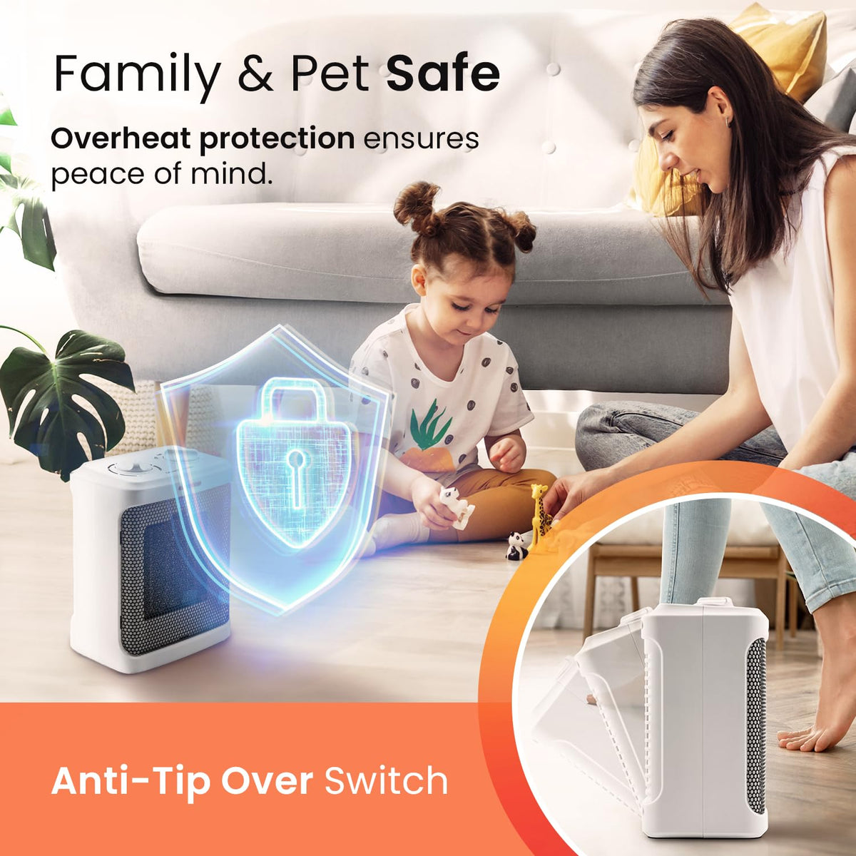 Pro Breeze Space Heater 1500W Portable Electric Heater For Indoor Use, Ceramic Heater With Adjustable Thermostat, Small Heater