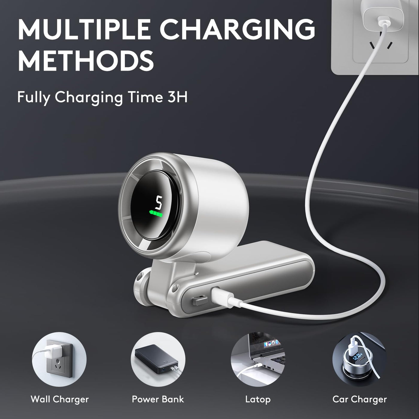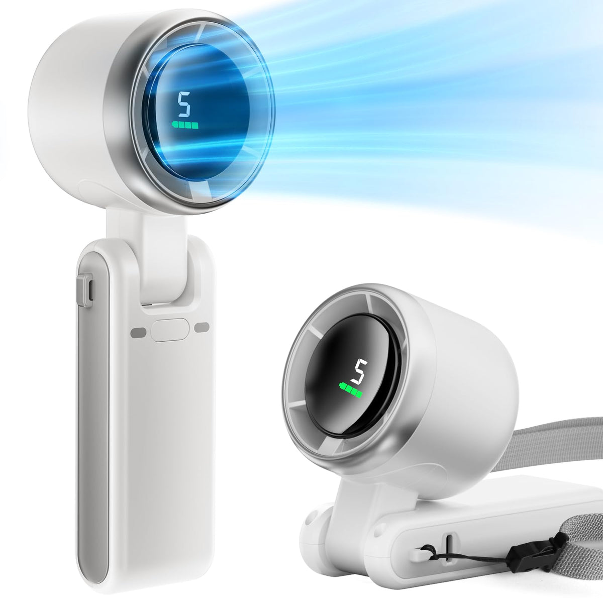Pymoji Foldable Handheld Fan, Portable Strong Winds Rechargeable 10000Mah Mini Turbo Fan, Digital Display, 5 Speed Adjustable Pe