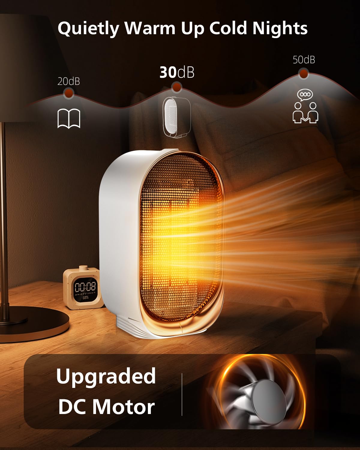 Q: Is the QQT Space Heater noisy during operation?A: No, the QQT Space Heater operates quietly, with noise levels controlled within 30dB ±. This makes it an excellent choice for indoor use, as it provides warmth without disrupting your peace and quiet.