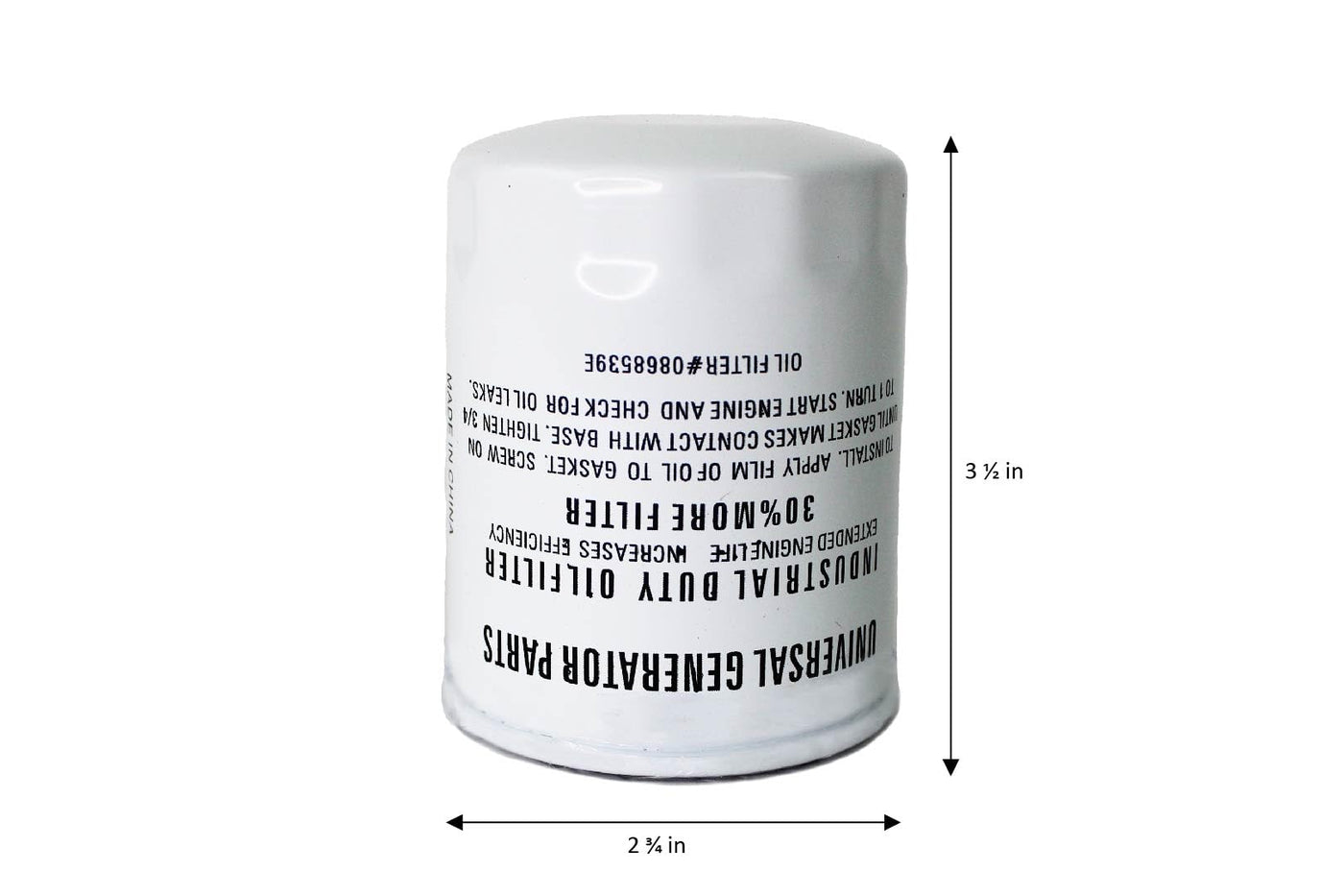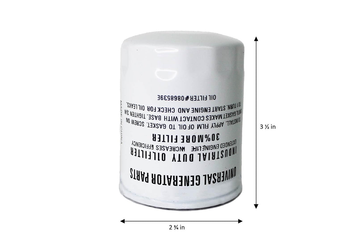 Q: What is the lifespan of the Universal Generator Parts oil filter?A: Crafted from durable, high-quality materials, this oil filter has proven longevity and is designed to last through multiple uses, making it a reliable choice for your generator maintenance.