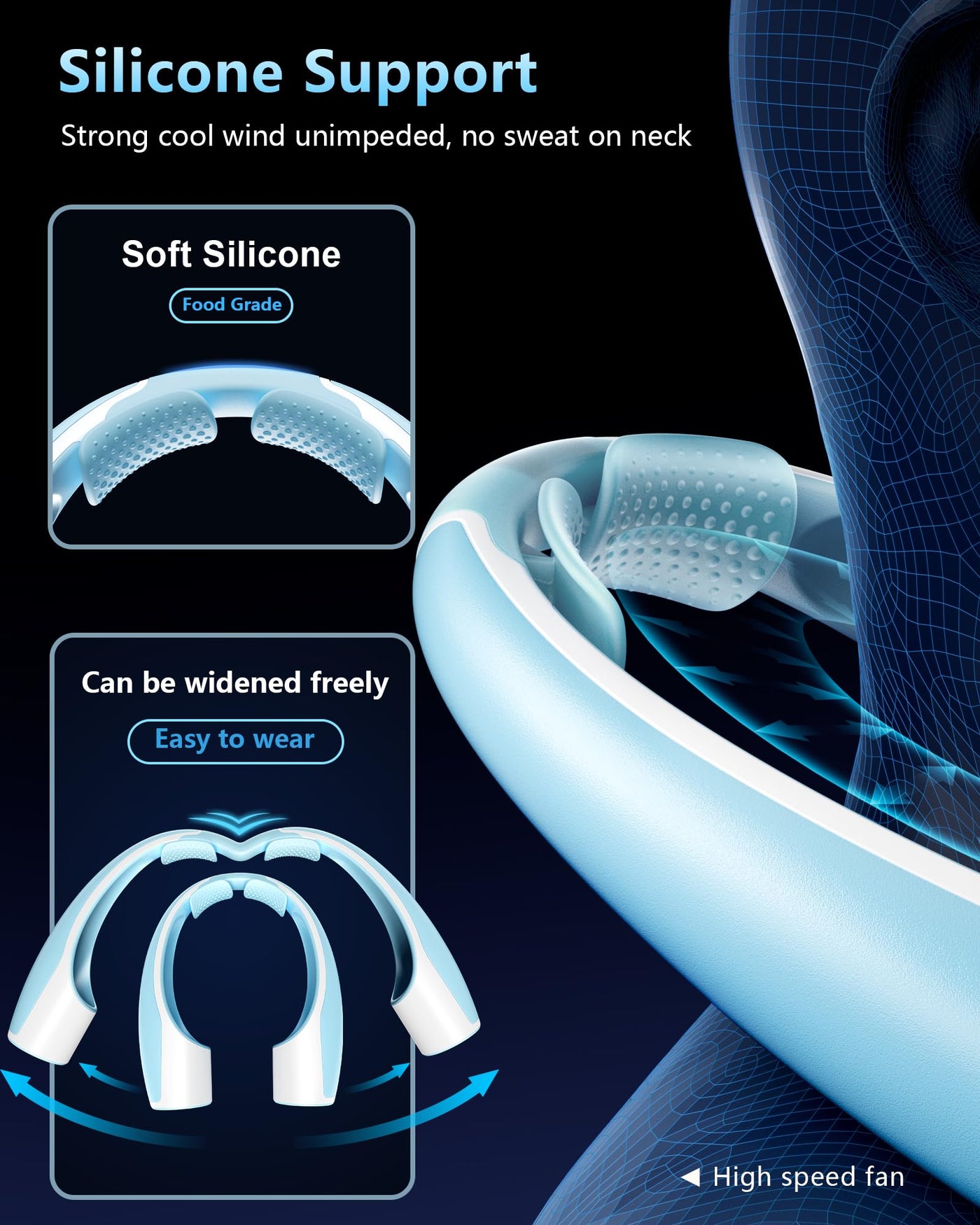 Q: Is the Rohent Neck Fan suitable for outdoor use?A: Yes, the Rohent Neck Fan is designed for outdoor enthusiasts, providing 360° cooling around your neck and face, making it perfect for hiking, running, and other outdoor activities.