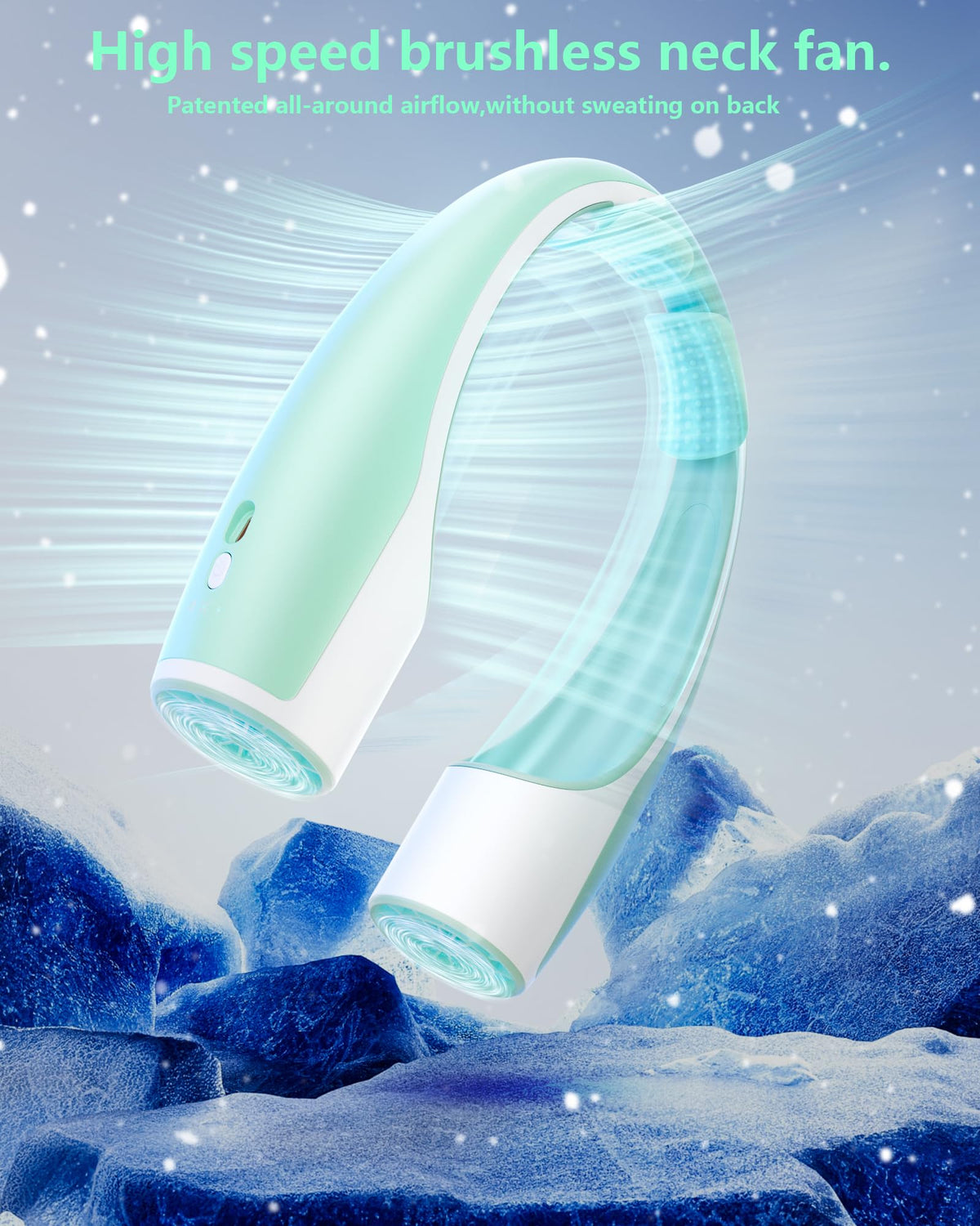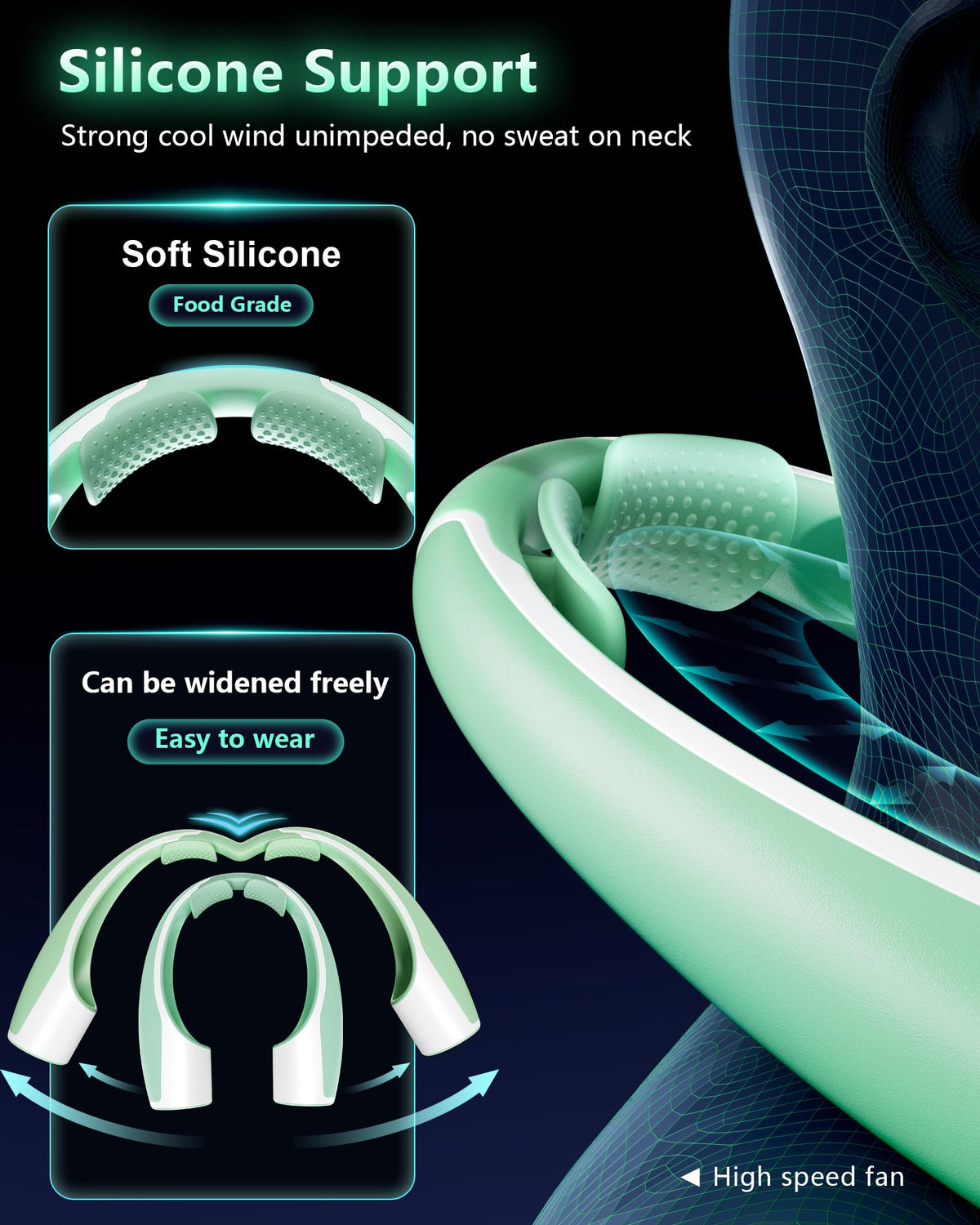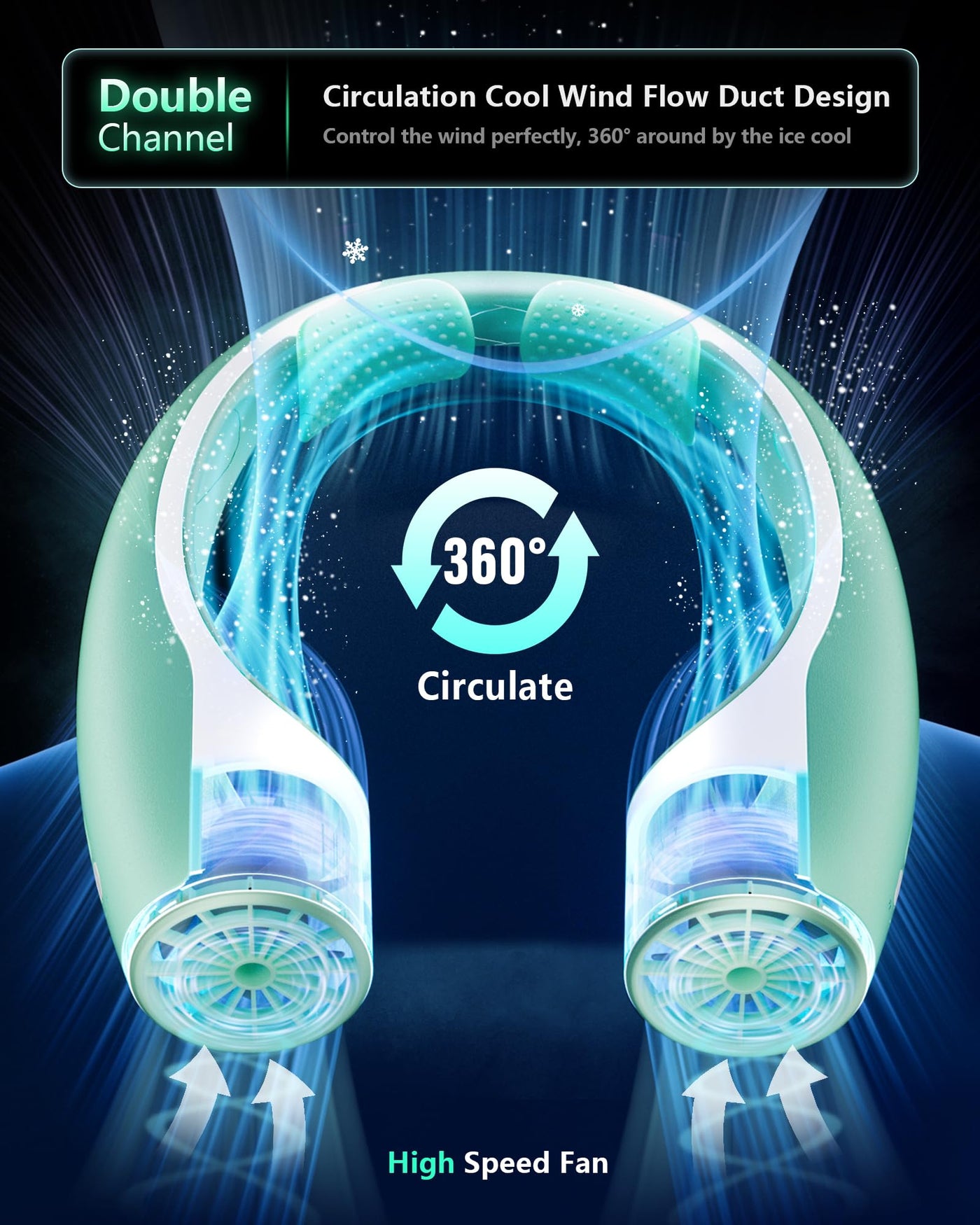 Rohent Neck Fan Portable For Personal: High Power Faster Cooling Neck Fans 4 Speeds Wind - Ultra Quiet Wearable Neck Fan For Travelers Hikers Campers Gardeners - Green