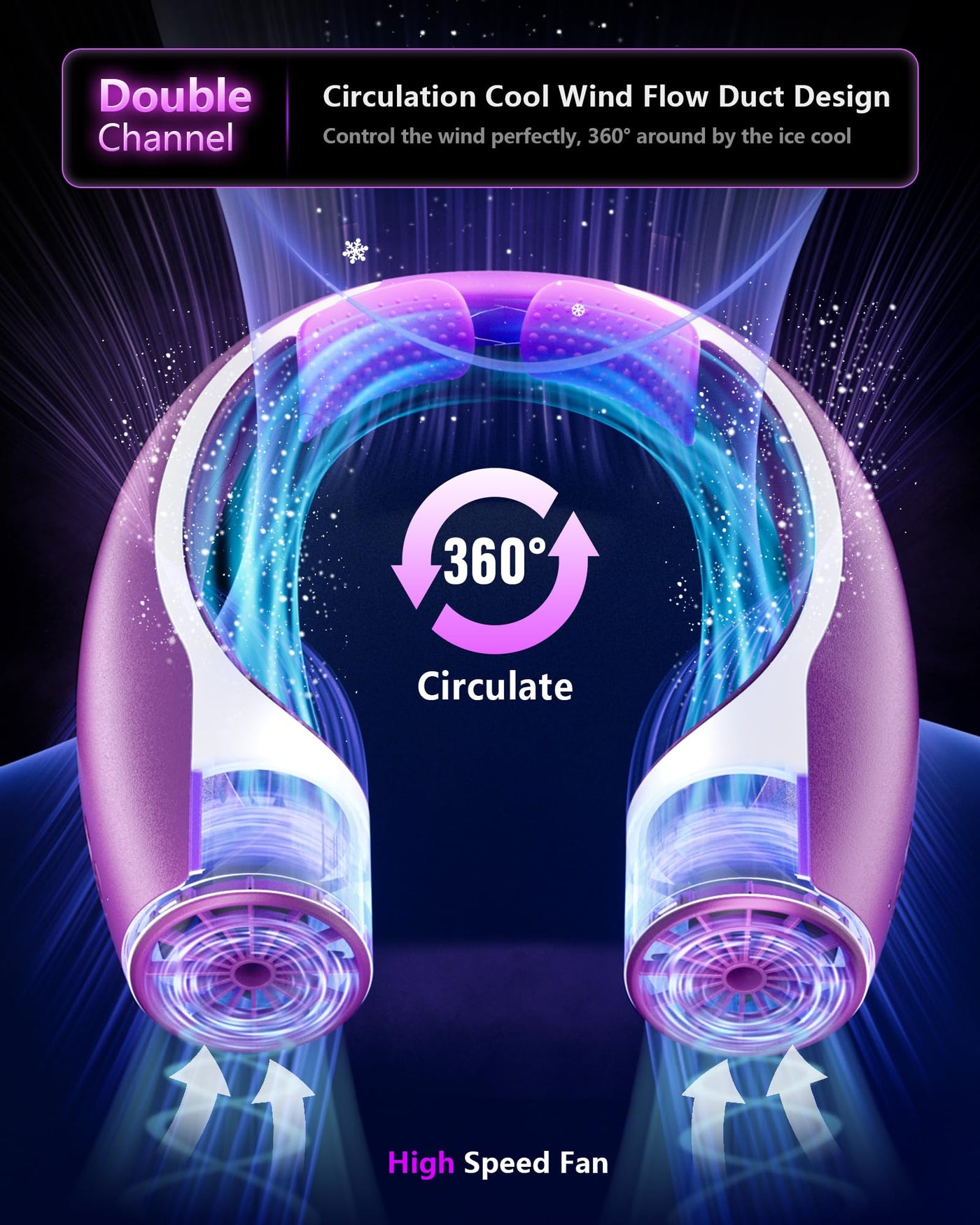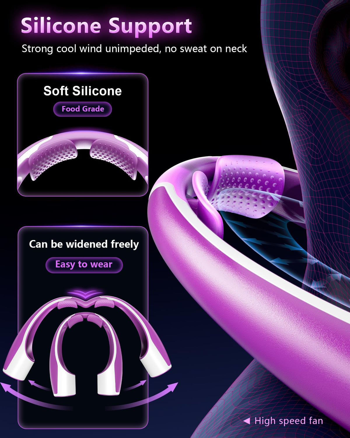 Rohent Neck Fan Portable For Women: High Speed Faster Cooling Neck Fan 4 Speeds Wind - Super Light Ultra Quiet Rechargeable Personal Fan For Fashion Women 13-35Y Girls - Purple