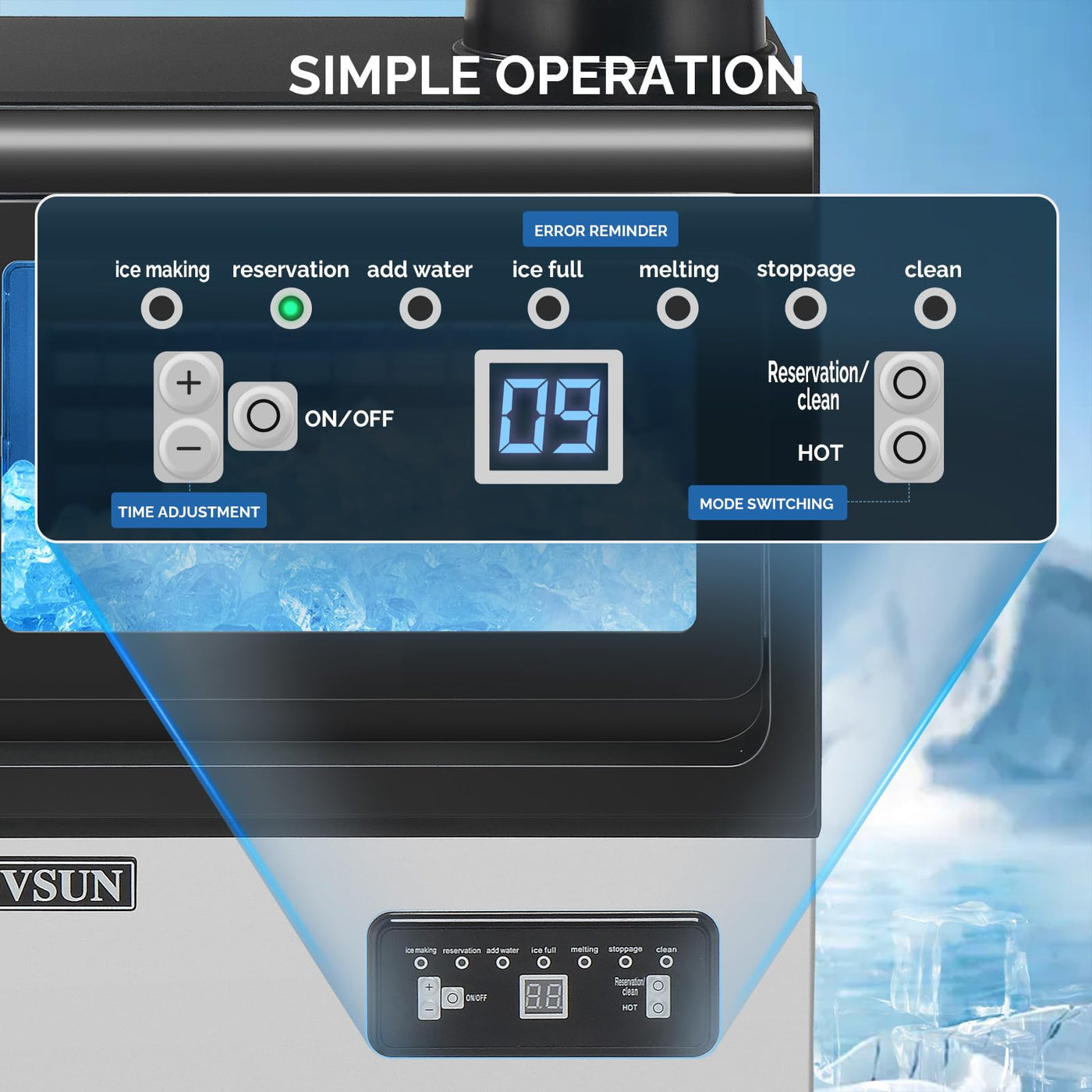 We Attach Great Importance To The Quality Of Our Products. Every Rovsun Ice Machine Is Carefully Manufactured And Tested To Ensure Its Safety And Durability. The Device Is Made Of Durable Stainless Steel, Which Has Rust Resistance, Extending Its Service Life. If You Are Looking For A High-Quality Home And Light Commercial Ice Machine, Then Our Product Is Your First Choice. Please Note That When Installing This Machine, It Is Necessary To Use A Water Pipe And Floor Drain, Which Are Essential. Our Ice Machine Has A Fast Ice-Making Function, Only 11 To 18 Minutes Can Produce Up To 32 Ice Cubes Per Cycle & 70 Pounds Of Clear Ice Cubes Per Day. The Size Of The Ice Cubes Is 0.9''*0.9''*0.9'', And The Ice Storage Box Can Hold 11 Pounds Of Ice At Once. Our Ice Machine Is Elegantly Designed And Compact, Suitable For Standalone Or Built-In Applications. The Device Does Not Take Up Too Much Space And Is Perfectly Suitable For Under The Counter Or Kitchen Cabinets. It Is Suitable For Homes, Restaurants, Bars, Hotels, Grocery Stores, Cafes, Supermarkets, Etc. Specifications: Voltage: 115V/60Hz Material: Stainless Steel & Abs Material Ice Making Capacity: 70Lb / 24H Number Of Each Ice Tray: 32Pc Ice Making Time: 11-20 Mins Ice Bin Storage Capacity: 11Lb Refrigerant : R290 Weight: 35.9Lb Product Size: 13.4'' X 13.6'' X 27.1'' (L X W X H) Room Temp: 50-100? Water Supply Temp: 41-95? Water Supply Pressure: 0.04-0.6 Mpa Package Includes: 1 X Ice Maker 1 X Inlet Hose With Filter 1 X Ice Scoop 1 X Drainage Pipe 1 X User Manual 1 X Accessory Bag Warm Notice: 1. Floor Drain Thing Is Needed For Using This Machine 2. Ice Storage Bin Does Not Have Freezing Function, Please Take The Ice Out Time In Case Of Melting 3. Machine Makes Block Of Ice, Please Use Ice Scoop For Breaking The Ice Block
