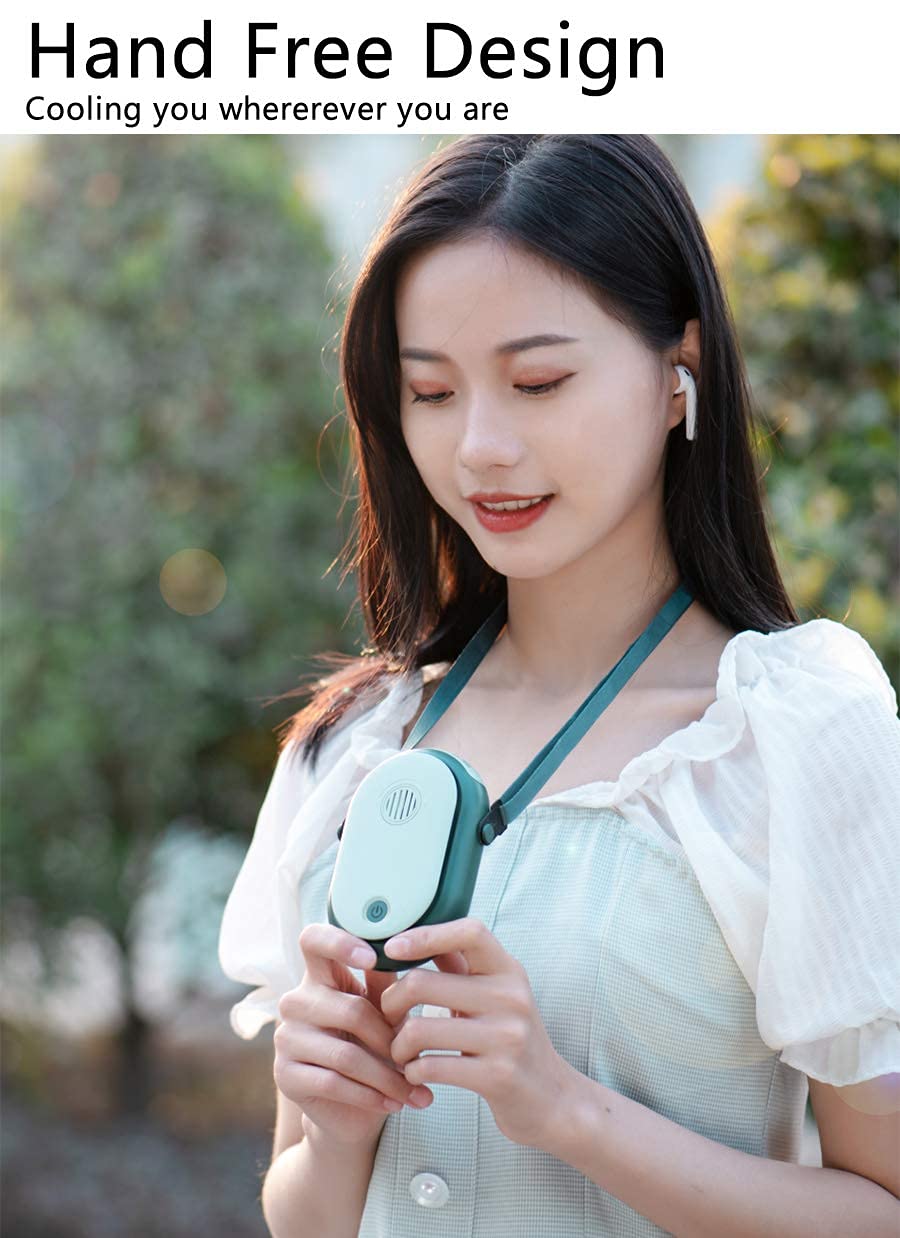 Q: What safety features does the RUINUOKAI neck fan have?A: The RUINUOKAI neck fan includes a one-button control for easy operation and is designed to be safely stored in your bag or pocket when not in use, preventing accidental activation.