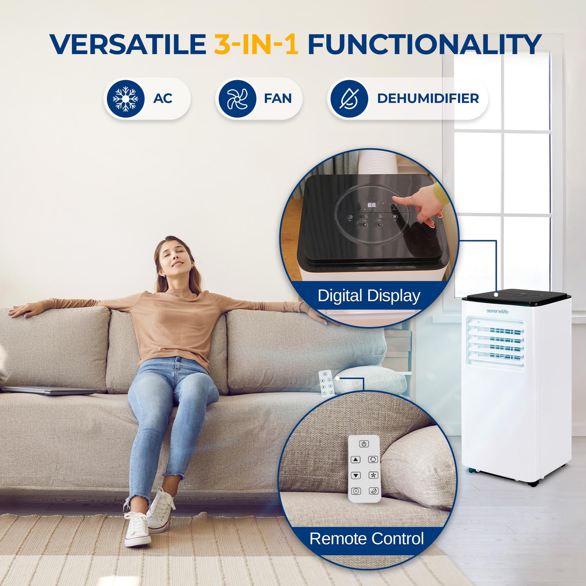 Serenelife 8000 Btu Portable Air Conditioner, 3-In-1 Compact Standing Air Conditioner For Room Up To 350 Sq. Ft., Floor Ac Unit