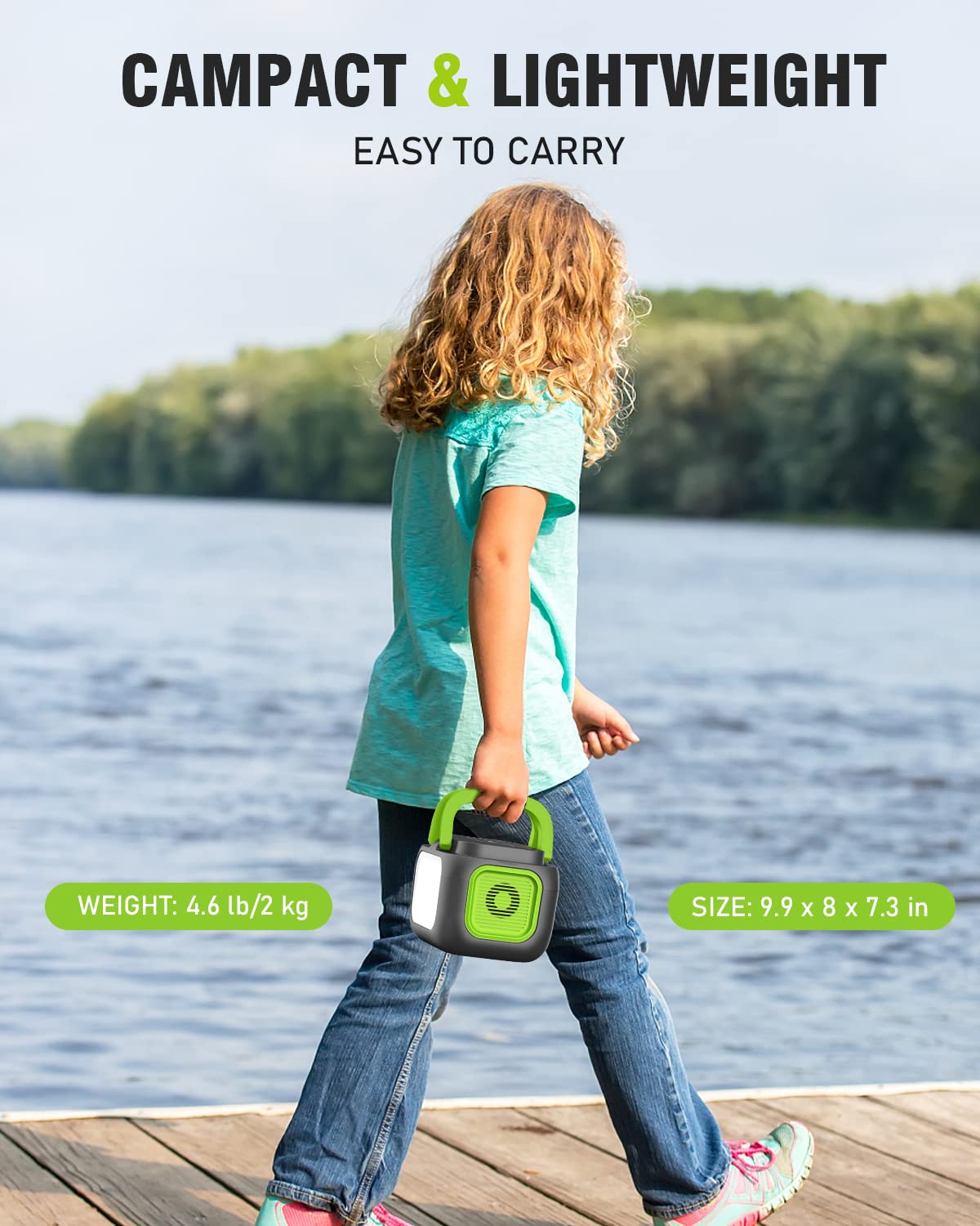 Q: What additional features does the power station offer for outdoor use?A: The power station includes an LED camping lantern with three brightness levels and SOS mode, making it perfect for camping or emergency situations. It also has a compact and lightweight design with a foldable handle for easy transport.