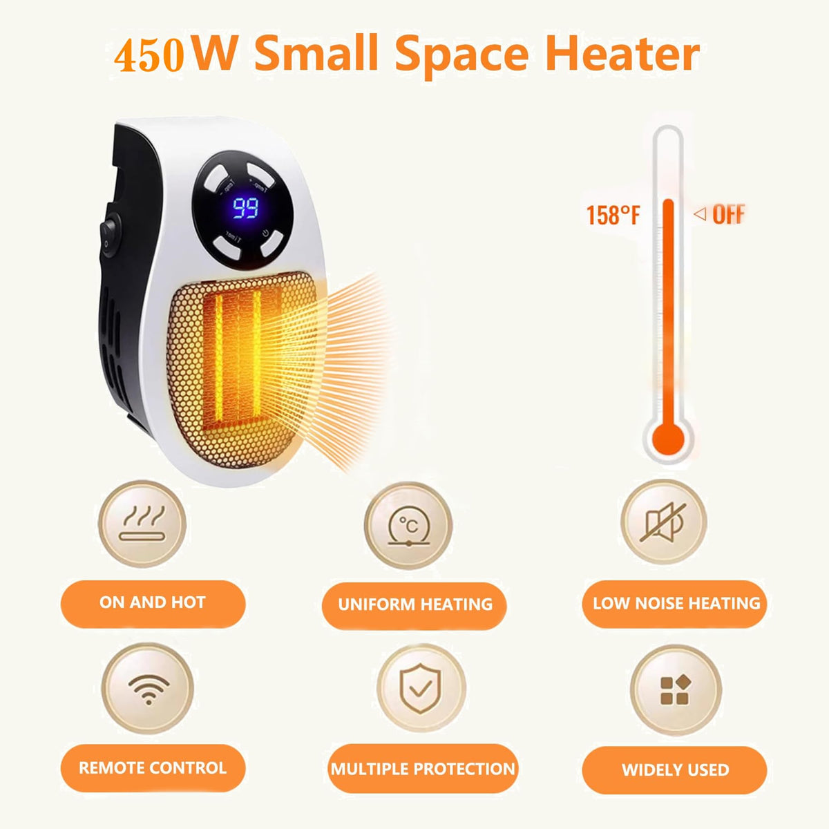 Smart Thermostat Space Heater,450W Portable Electric Small Heater With Timer/Overheat Protection,Safe Heater,Energy Saving Heate