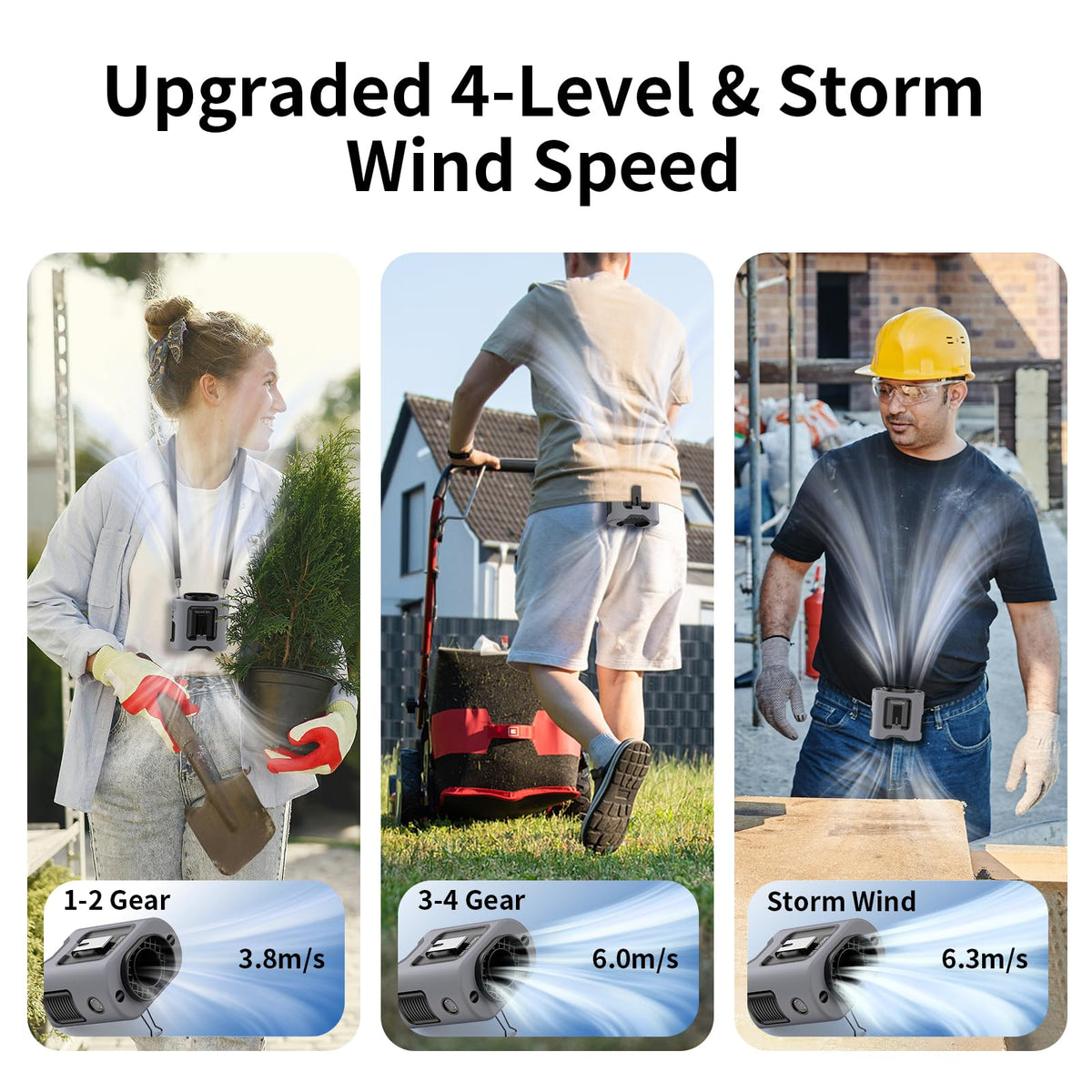 Socool 14500Mah Portable Waist Fan Clip On Belt 360 Rotation Wearable Rechargeable Personal Shirt Fan, 67H Cooling 5-Speed Batte
