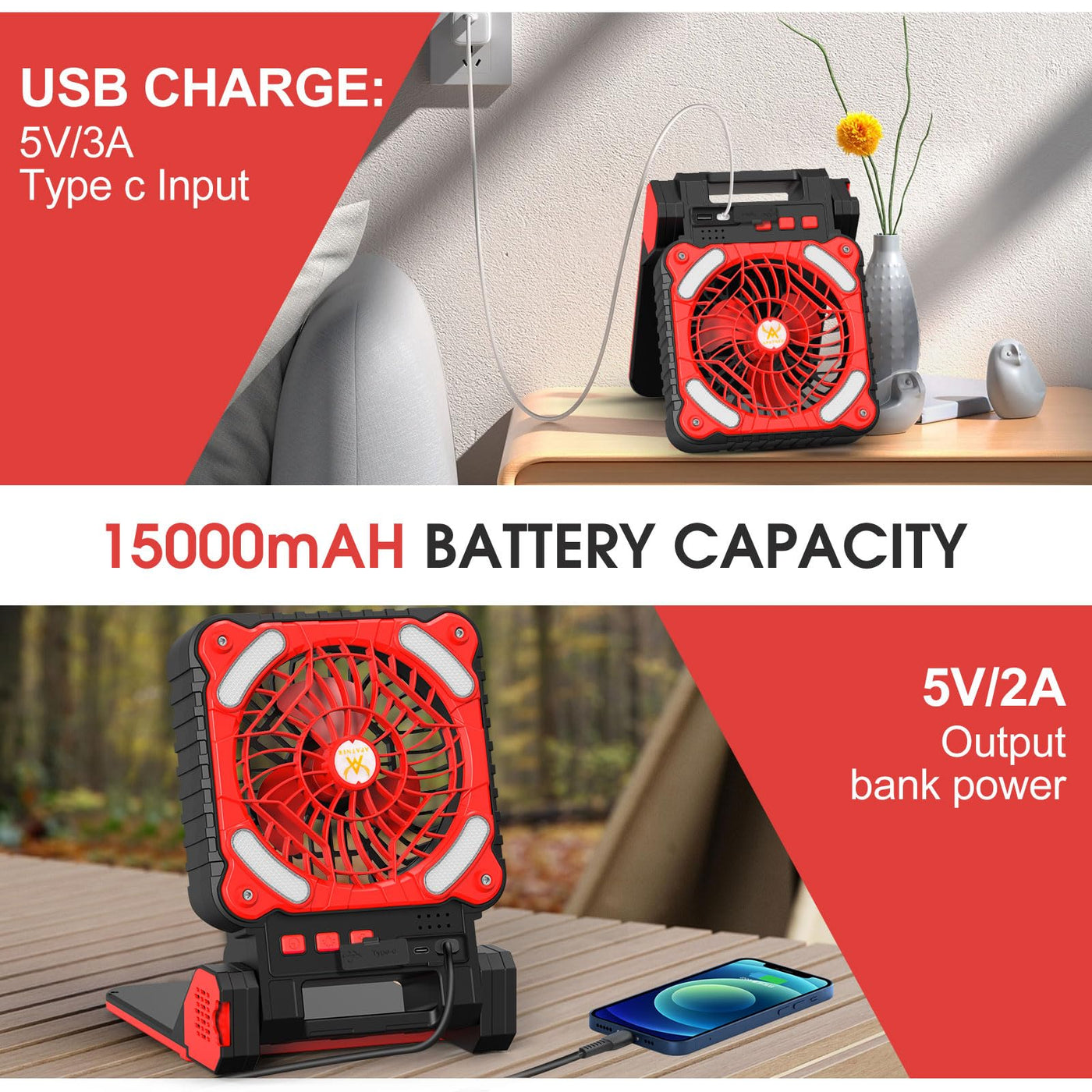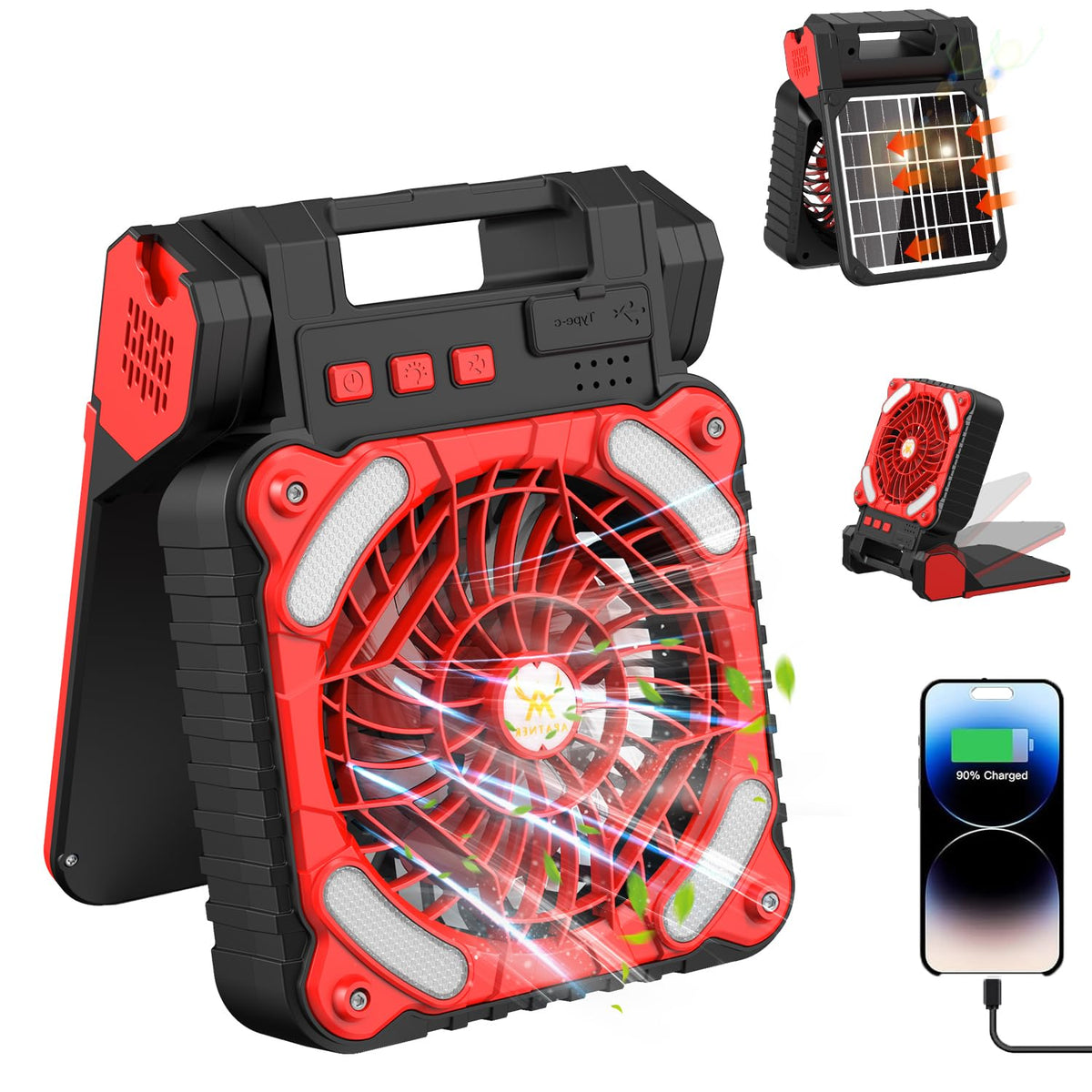 Solar Camping Fan, 15000Mah Outdoor Portable Rechargeable Tent Fan Camping Essentials Personal Cooling Fan Battery Operated With