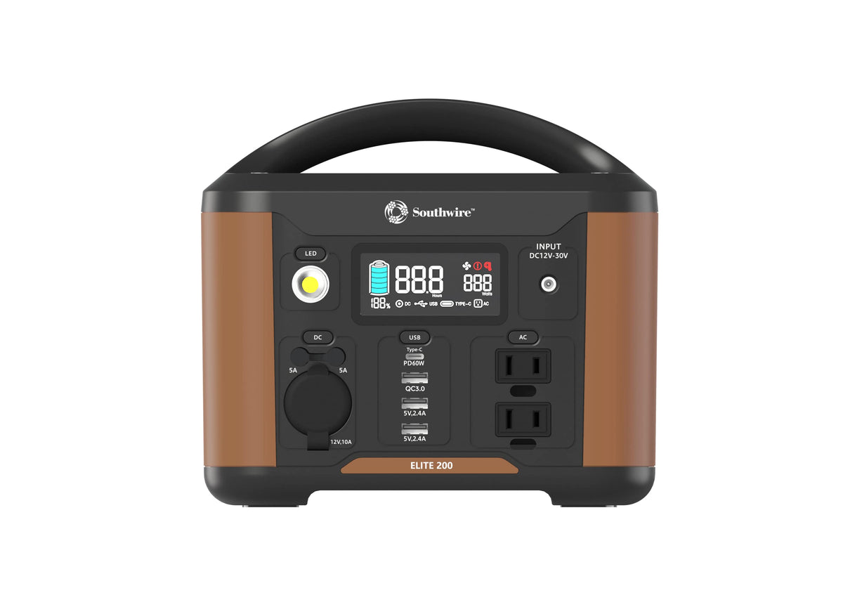 Wherever Your Next Adventure Leads You, Southwires Elite 200 Series Portable Power Station Offers Power On-The-Go. With Its Sleek Design And High-Performing Capability, Youll Be Prepared For Anything. Whether Youre Dealing With An Unexpected Power Outage, Or Youre Planning A Trip In The Woods, The Portable Power Station Is What You Need. With Its 222 Watt-Hour Capacity Certified Lithium-Ion Battery With Six Ways To Charge And A Built-In Led Light, Youll Have Power That Lasts When It Matters The Most.