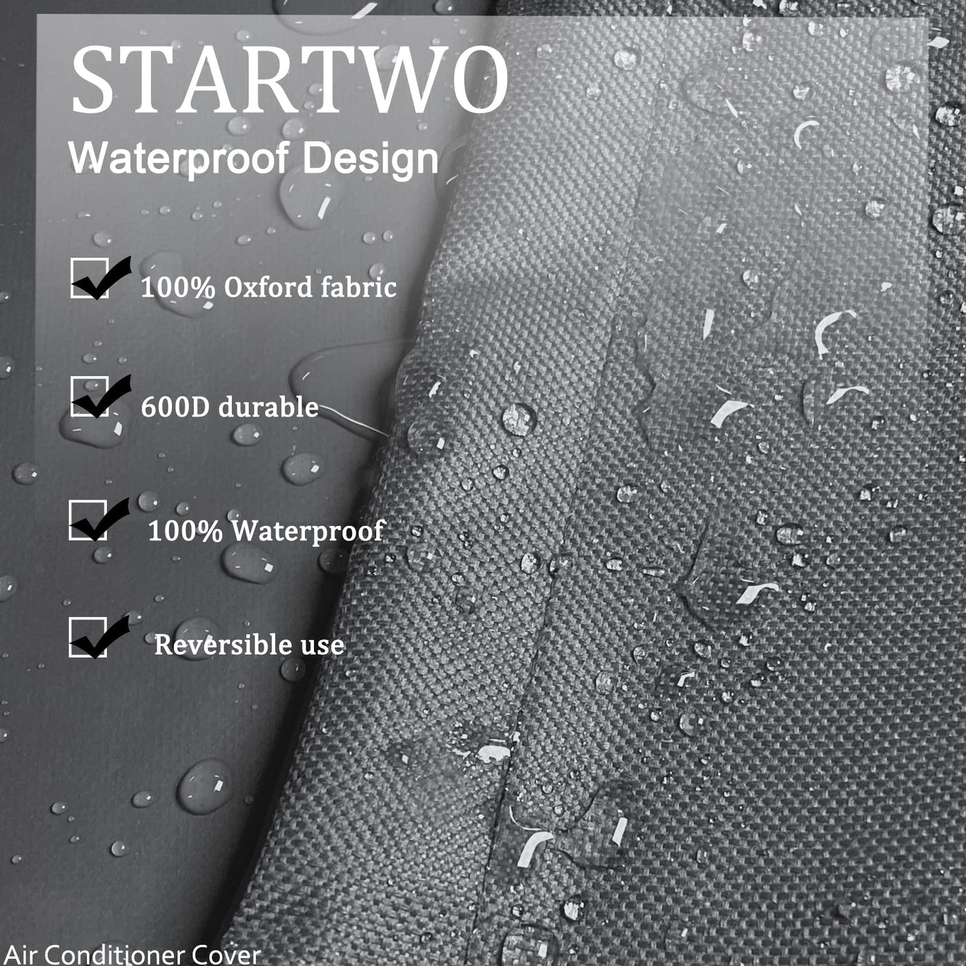 Q: Is the air conditioner cover waterproof?A: Yes, the STARTWO Air Conditioner Cover is made from water-repellent oxford fabric with a waterproof undercoating, ensuring that your air conditioner is protected from rain, snow, and other harsh weather conditions.