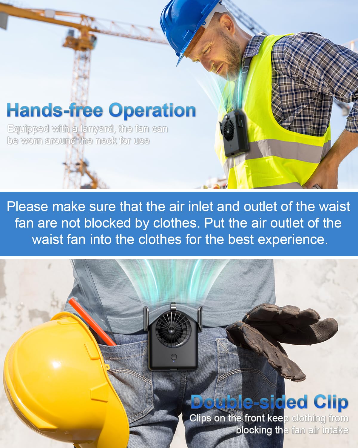 Stsase Portable Fan 10000Mah Rechargeable, Mini Waist Fan With Max 24H Working Time, 3 Speeds 5100Rpm Strong Airflow Wearable Personal Clip Fan Belt Fan For Outdoor, Jobsite, Farms, Traveling, Fishing