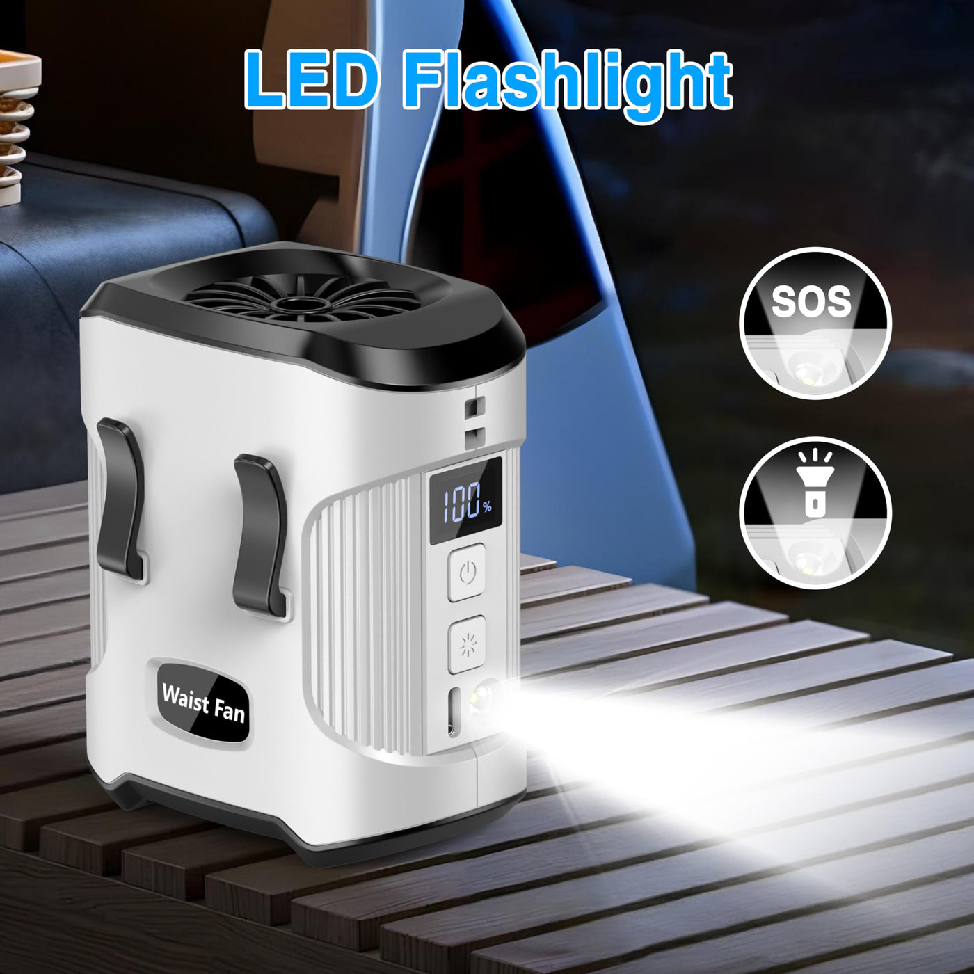 Sunoony Waist Fan Clip On Shirt Belt Body Wearable Hand-Free Rechargeable Battery Powered Fan With 3 Speed & Flashlight Cooling