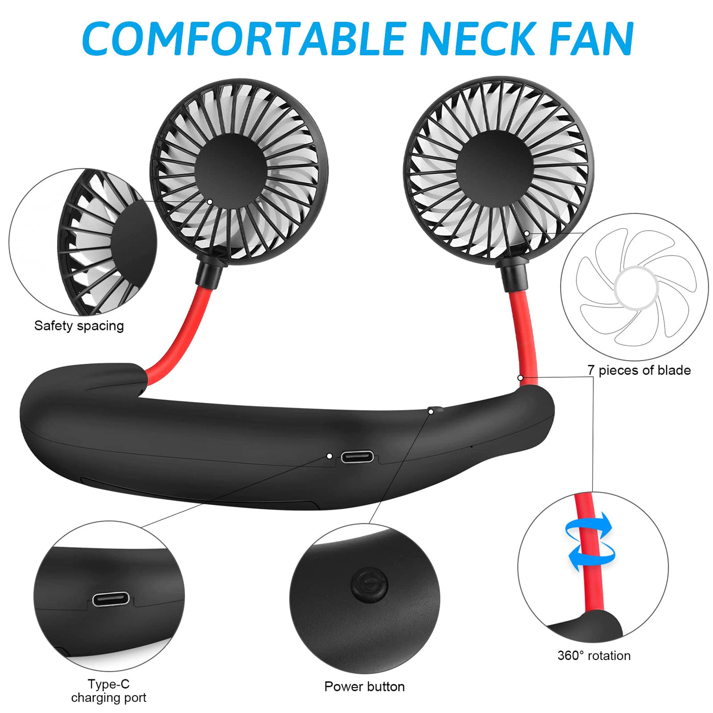 Sz-Jiahaiyu Hands-Free Headset Design, Wearable Portable Neckband Mini Fan.Product Information:Material: Abs + Silicone Weight: 185G Our Features 360 &Deg; Double-Headed Free Rotation ---- Two Fans Can Be Flexible Rotation, Which Allows You To Adjust To The Best Wind Direction , On The Neck To Free Your Hands, You Can Feel A More Powerful Airflow, But Also 360 &Deg; To Adjust The Direction, Which Allows You To Adjust To Any Different Angle, Portable, Simple.Scientific Humanized Design ---- Wearable Portable Neckband Mini Fan, Suitable For Travel Outdoor Office Use, The New Two-Stage Elastic Rod Structure Design, More Freely Adjust The Shape And Angle Of The Fan.Suitable For Travel Outdoor Office Use, Wearable Sports Fan To Cool Your Summer, Suitable For Travel Outdoor Office.Using Environmentally Friendly ---- Using Abs And Silicone Material And Unique Seven Fan Blades Design, So That The Portable Hands-Free Neck Wind With Fan More Soft And Durable Silent Work. Suitable For Offices, Libraries And Classrooms. No Worries, Easily Enjoy The Coolness And Fun Brought By The Mini Personal Fan.Ideal For Summer ---- Has A Unique Multi-Functional Design Making It Perfect For Long-Lasting Makeup, Keeping Your Skin Fresh Or Cooling Off After Exercise. It Is A Must-Have Gift For Children, Students And Men/Women, Outdoor/Sports/Cooking/Traveling Holidays, Etc.