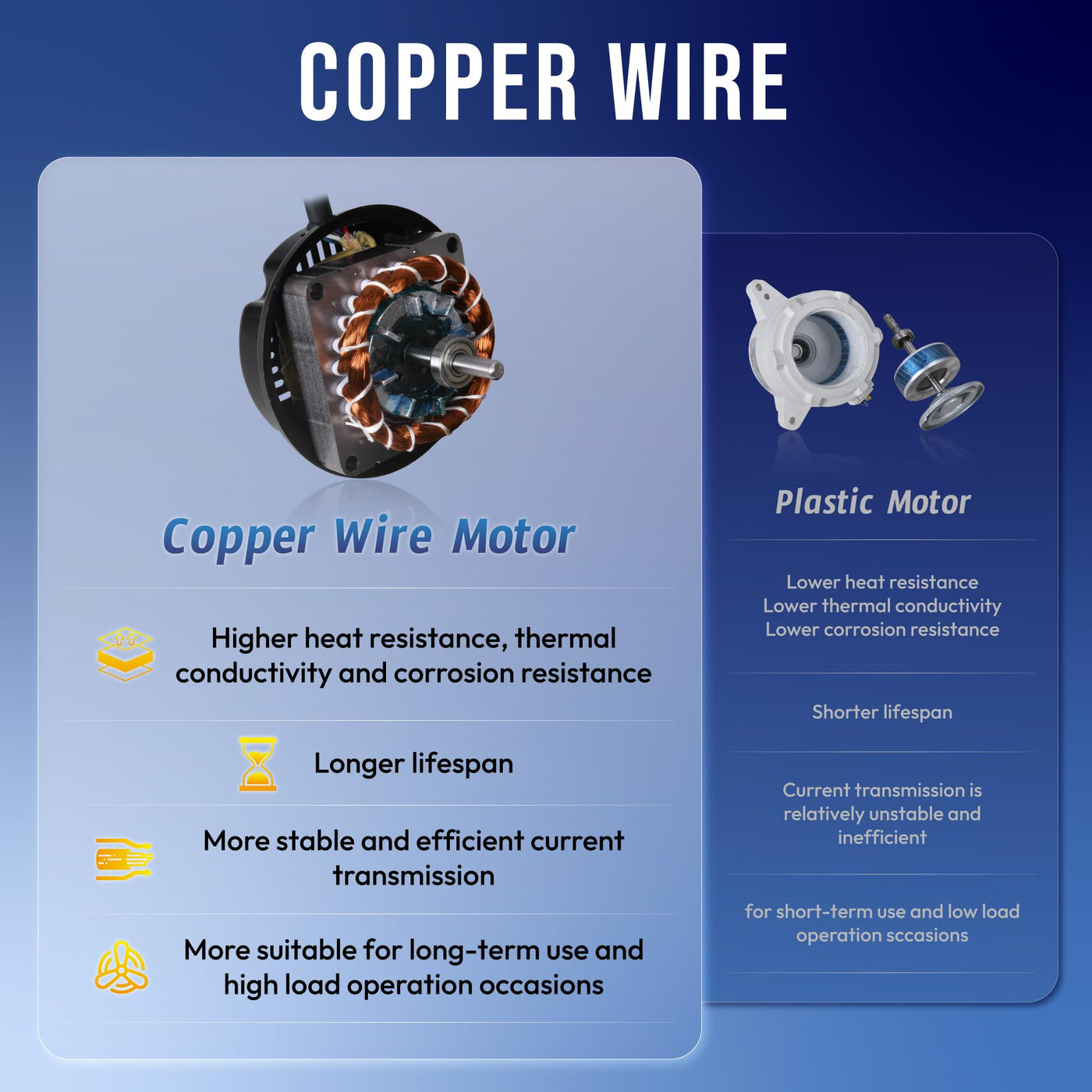 Q: What is the length of the power cord for the Tornado wall fan?A: The Tornado wall fan is equipped with an extra-long 6-foot SJT-R power cord, providing flexibility in positioning the fan while ensuring it can reach standard electrical outlets.