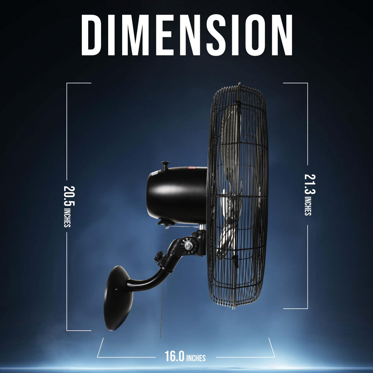 The 20'' Pro Wall Fan Delivers Powerful Airflow While Conserving Valuable Floor Space. Perfect For Industrial, Commercial, Residential, Covered Patios, Warehouses, And Factories. Not Designed For Outdoor Use. | Built With Durable Aluminum And Steel, Featuring A Rust-Resistant Grille. Includes An Extra-Long 6.6 Ft Sjt-R Power Cord. Specifications: 1.25 Amps, 1550 Rpm, 5250 Cfm, 120V, 150 Watts, 60 Hz, 1/6 Hp. Complies With Osha And Ul507 Standards, Ul Safety Certified. | Three-Speed Air Delivery: 5250/4450/3600 Cfm. Features A Heavy-Duty, Thermally Protected, Direct-Drive Motor With Ball Bearings. Offers 75