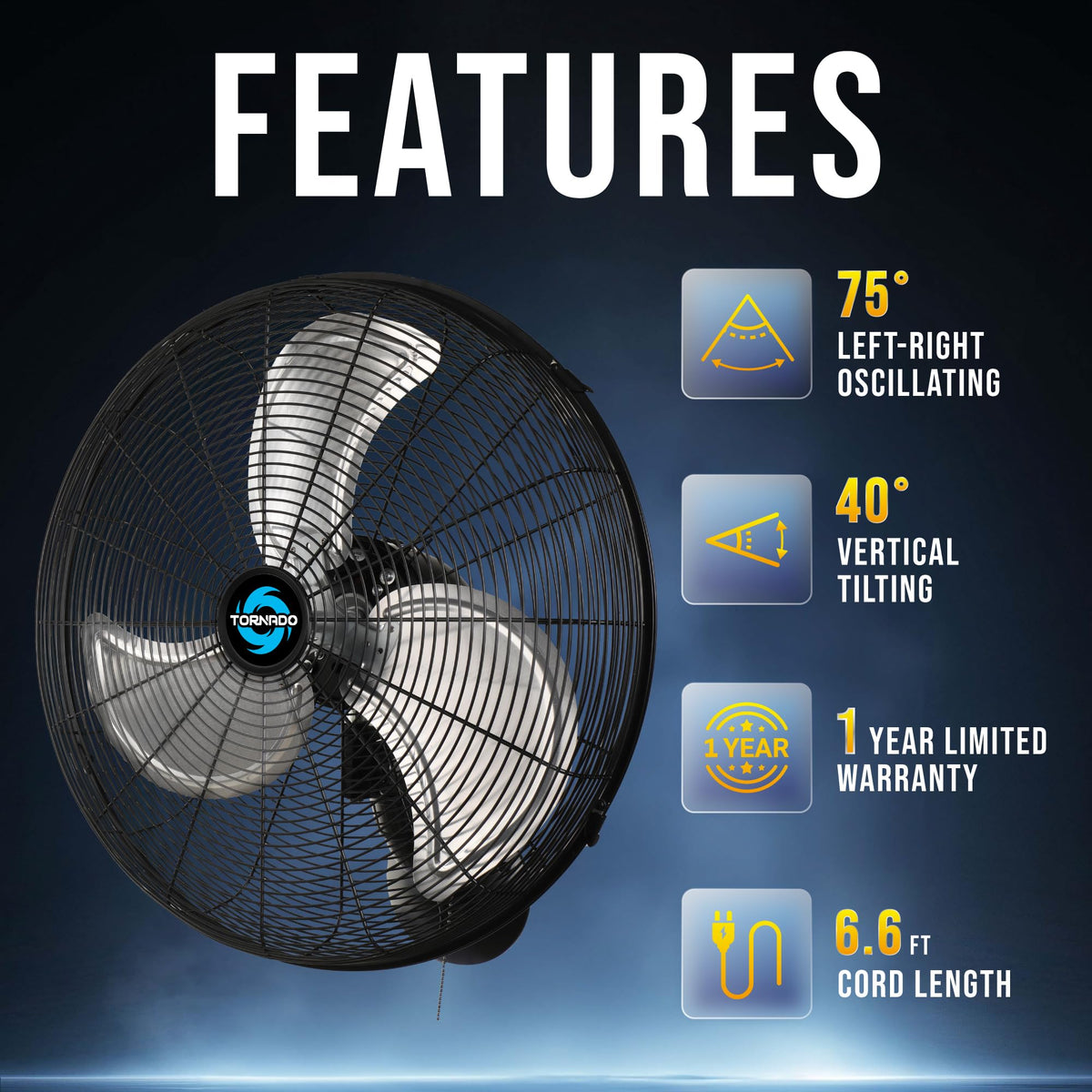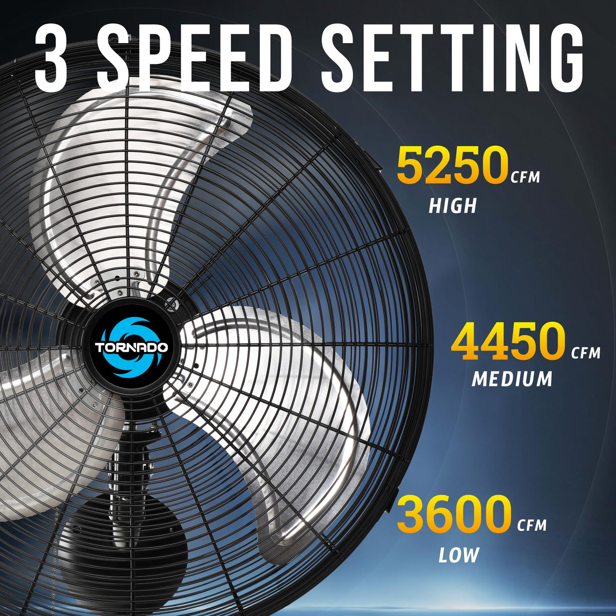 Tornado 20 Inch Professional High-Velocity Oscillating Wall Fan - Ideal For Industrial, Commercial, And Residential Use - 3-Spee